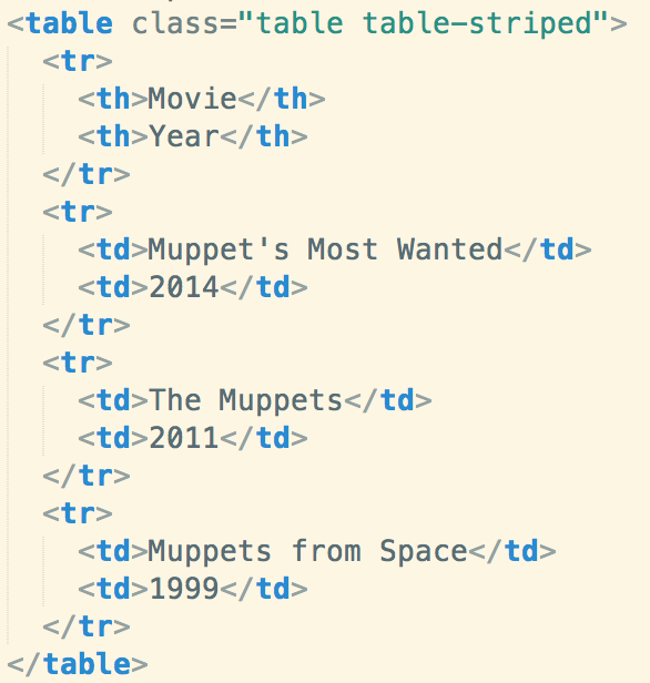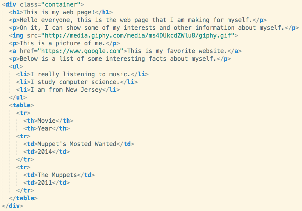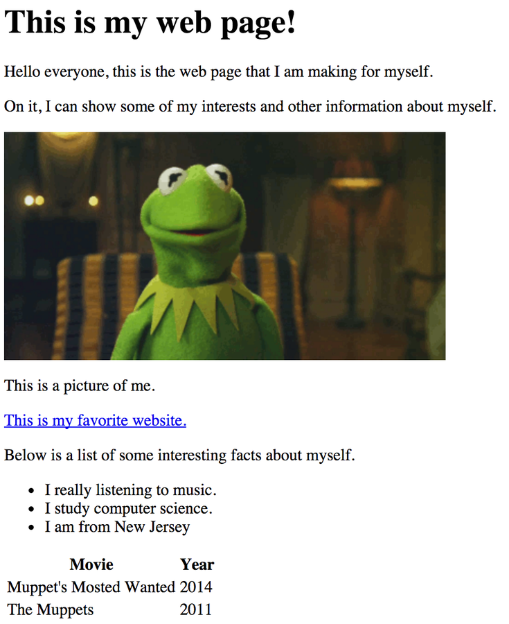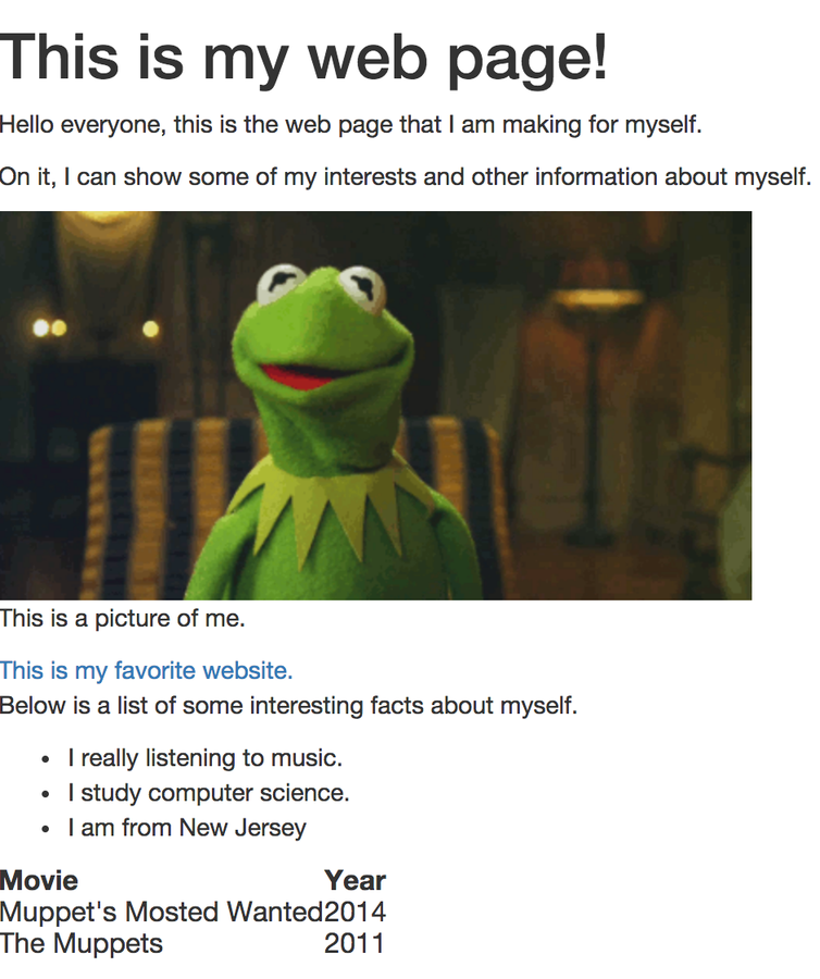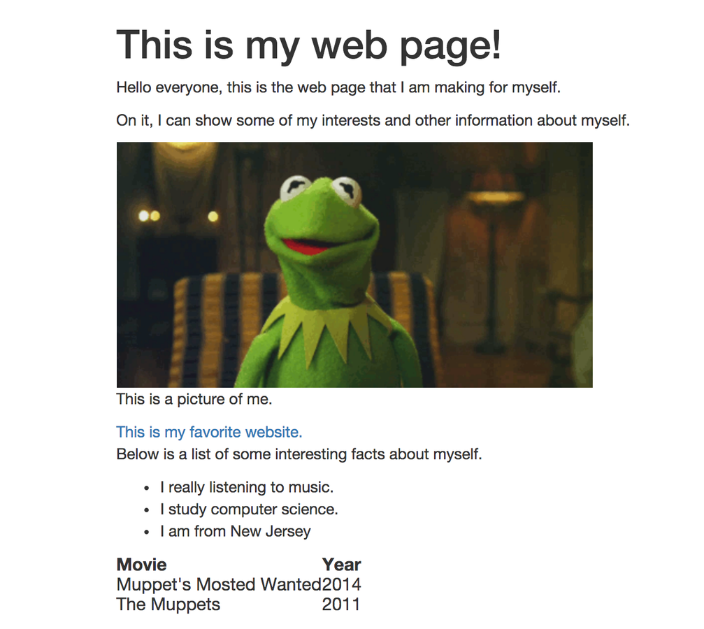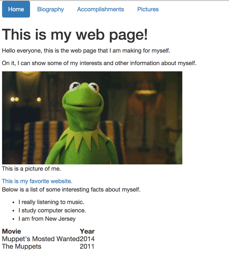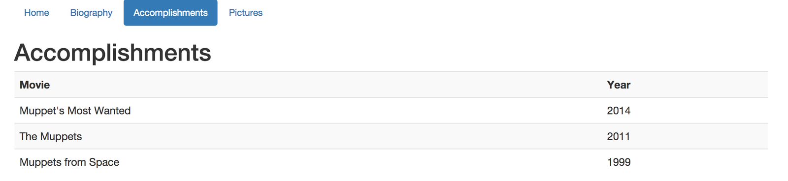 Add some of your celebrity's songs/movies/teams, etc. to a table on your page with at least two columns