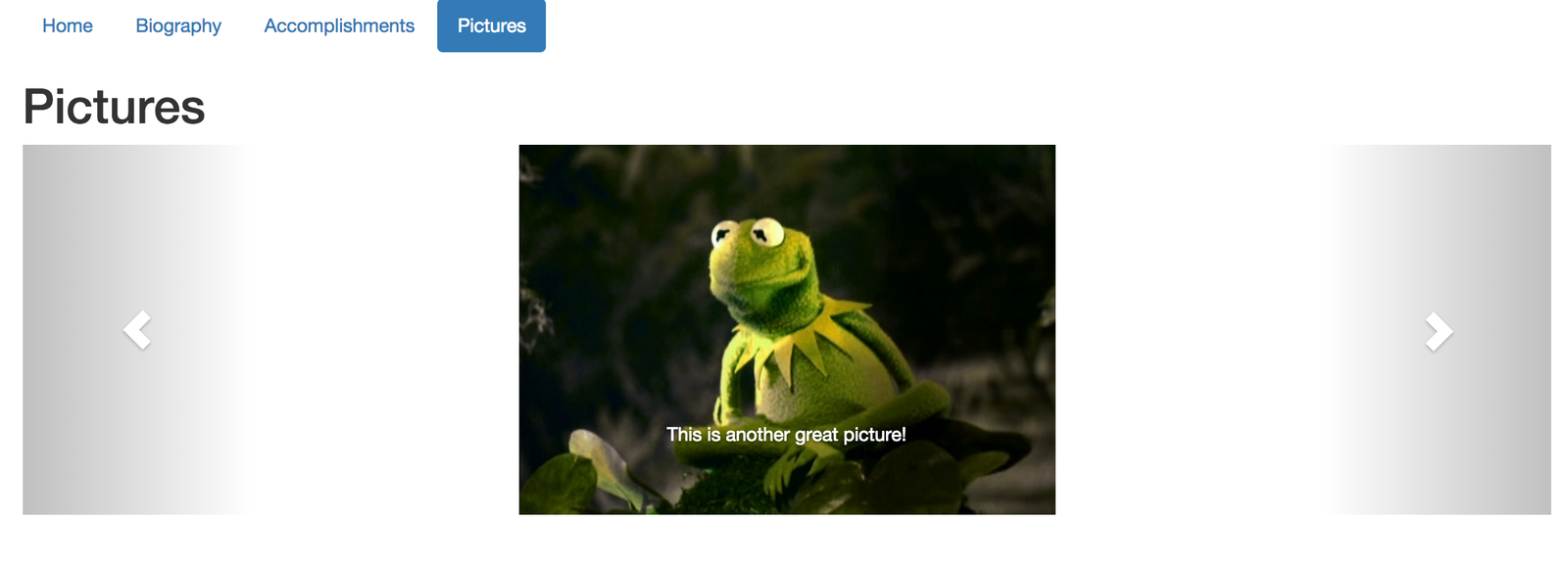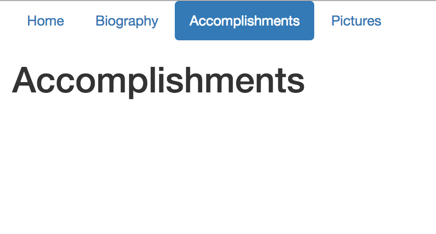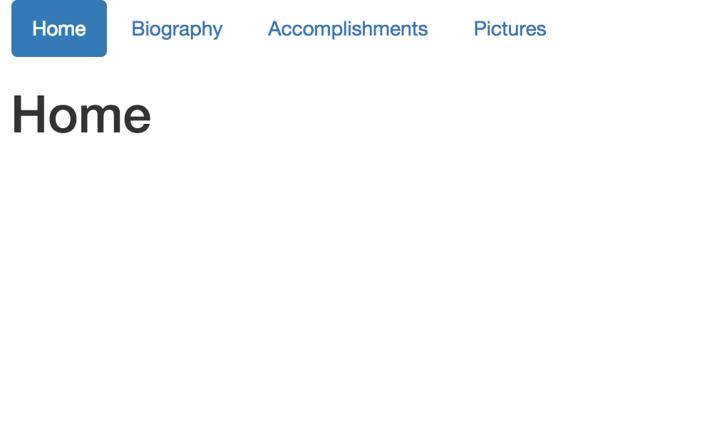 Give it four sections (Home, Biography, Accomplishments, Pictures)