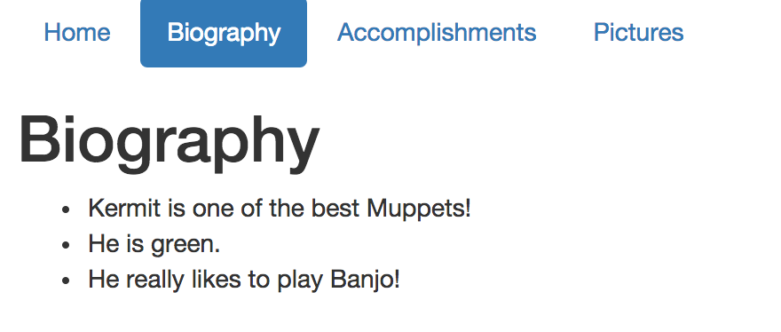 We use a nav bar to navigate between them, and it all looks beautiful with Bootstrap!