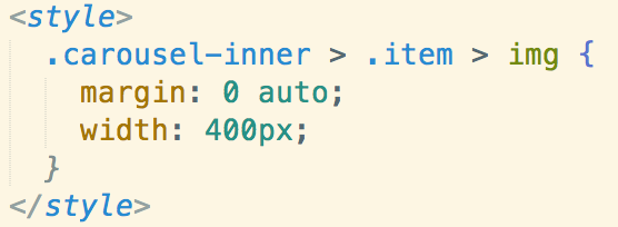 The code picks out all images inside of items inside of carousel-inners, centers them, and makes them 400 pixels wide