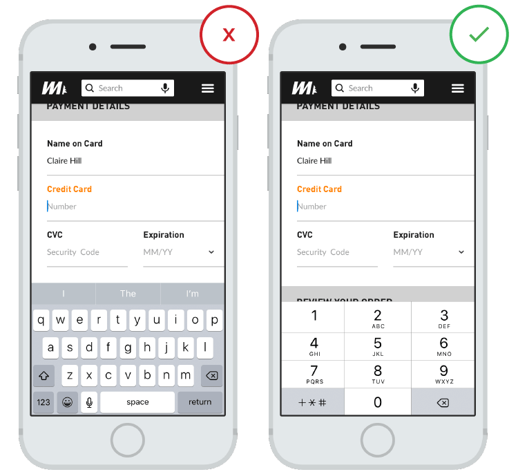Los usuarios de las apps aprecian que les proveas del teclado correcto para el ingreso de texto. Asegúrate de que este implementado consistentemente en toda la app, y no solo para algunas tareas.