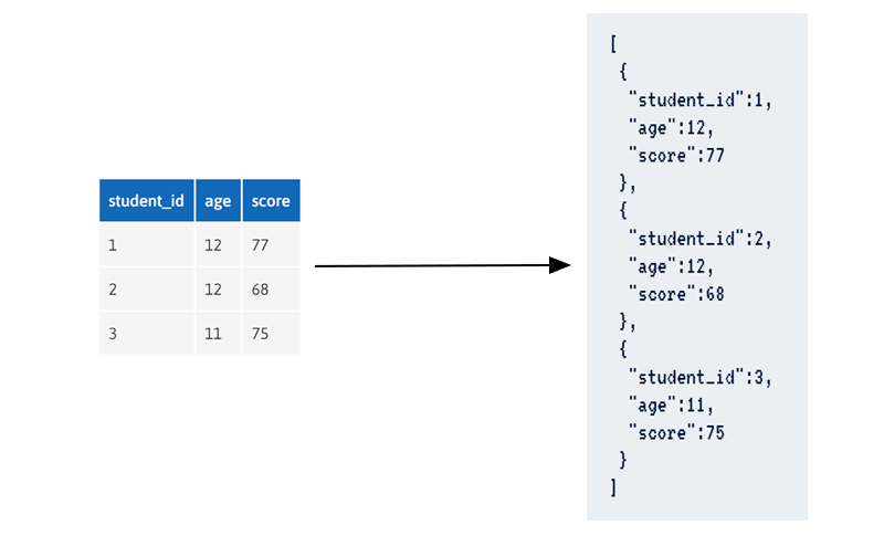 Los dos esquemas de la imagen contienen exactamente la misma información. Lo único que cambia aquí es el formato: cada documento de la figura de la derecha es una fila de la figura de la izquierda.