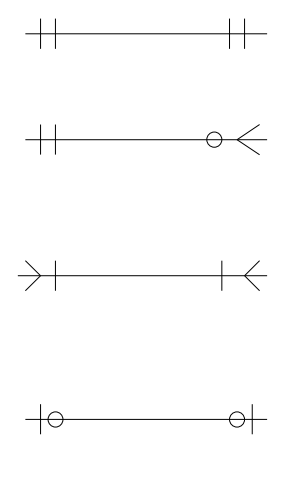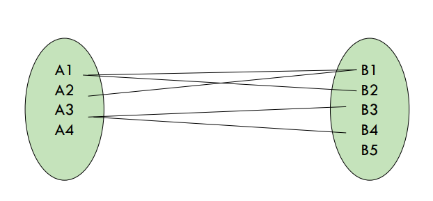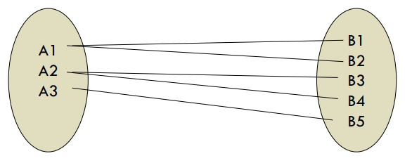 Una entidad en A esta asociada con cualquier número (0 ó más) de entidades en B. Una entidad en B, puede estar asociada a lo mucho con una entidad en A