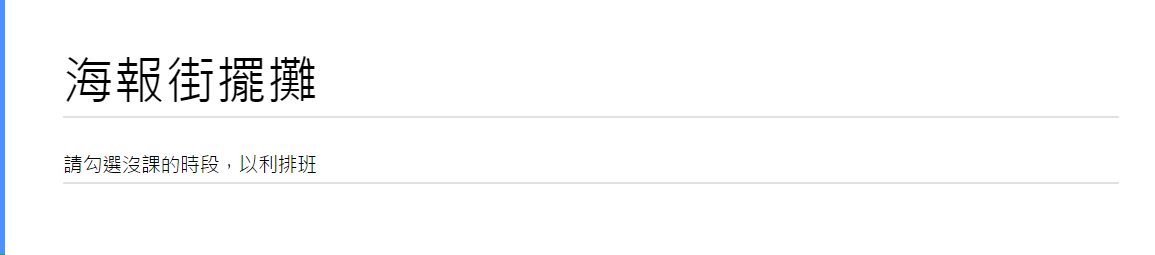 使用核取方塊讓人員勾選有空的時間,您可以自行決定所有欄位的名稱,只需記得在項目標題加上正確的數字,且一定要依照順序,從1.開始排項目,"1."、"2."、"3." 等等。