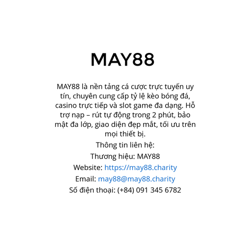 MAY88 là nền tảng cá cược trực tuyến uy tín, chuyên cung cấp tỷ lệ kèo bóng đá, casino trực tiếp và slot game đa dạng. Hỗ trợ nạp – rút tự động trong 2 phút, bảo mật đa lớp, giao diện đẹp mắt, Website:https://may88.charity/