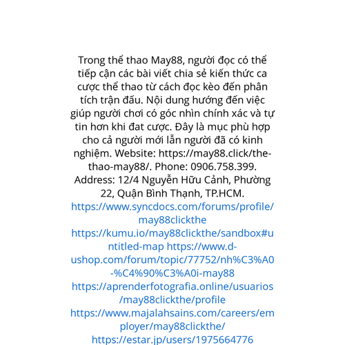Website: https://may88.click/the-thao-may88/. Trong thể thao May88, người đọc có thể tiếp cận các bài viết chia sẻ kiến thức ca cược thể thao từ cách đọc kèo đến phân tích trận đấu. Nội dung hướng đến việc giúp người chơi có góc nhìn chính xác và tự