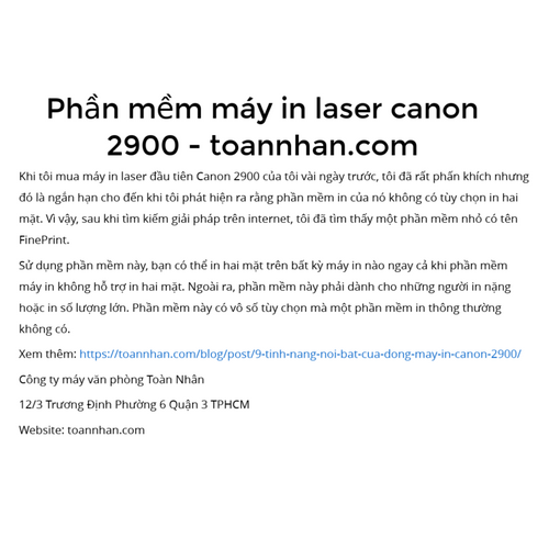 Giới thiệu về dòng sản phẩm máy in Canon 2900. một thiết bị được mệnh danh là huyền thoại của thương hiệu máy in Canon. Thương hiệu rất được yêu thích hiện nay nhờ vào những dòng sản phẩm máy in có chất lượng in ấn cao, cho ra bản in sắc nét cùng tốc độ in tốt, đáp ứng được mọi nhu cầu in ấn trong văn phòng