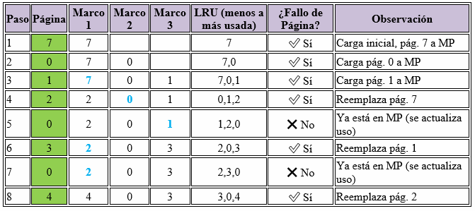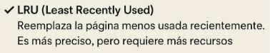 LRU = Algoritmo Menos Recientemente Usada