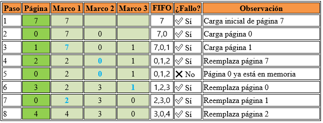 Un proceso es un programa en ejecución que necesita un espacio de memoria para almacenar instrucciones y datos. Esta memoria se organiza de manera lógica para cada proceso, con direcciones que van desde 0 hasta un valor máximo. Sin embargo, asignar grandes bloques de memoria contigua puede generar fragmentación externa, dificultando un uso eficiente de la RAM. Para resolver este problema, los sistemas operativos implementan la técnica de paginado, que consiste en dividir la memoria lógica del proceso en bloques del mismo tamaño llamados páginas. Simultáneamente, la memoria física también se divide en bloques del mismo tamaño llamados marcos de página. Cada página del proceso puede ubicarse en cualquier marco disponible en la memoria, y esta relación se mantiene en una estructura llamada tabla de páginas. Cuando el proceso accede a una dirección lógica, el sistema operativo traduce esa dirección en una dirección física consultando dicha tabla. Si la página requerida no se encuentra en la RAM, se produce un fallo de página y el sistema operativo la trae desde el disco. Cuando no hay espacio libre, se utiliza un algoritmo de reemplazo de página para decidir cuál eliminar, siendo comunes los algoritmos FIFO, LRU. El paginado permite ejecutar procesos grandes en memorias pequeñas, evita la fragmentación externa y optimiza el uso de la RAM, aunque introduce cierta sobrecarga en la administración de tablas y puede generar múltiples fallos de página si no se gestiona adecuadamente.