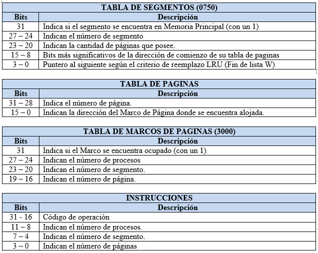 Un Sistema de computación controla su memoria con una técnica Segmentado – Paginado. Se trabaja con el proceso 0 (que consta de 5 segmentos) y además se posee la siguiente información.