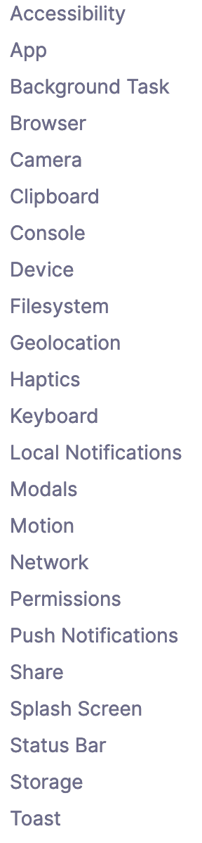 - Capacitor : https://capacitor.ionicframework.com/docs/getting-started/