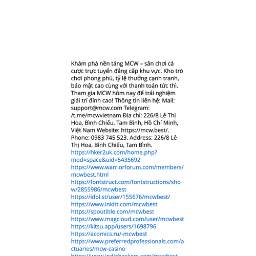 Website: https://mcw.best/https://mcw.best/ Trải nghiệm nhà cái MCW – nền tảng giải trí cá cược hàng đầu châu Á. Hệ thống game đa dạng, odds cực tốt, bảo mật cao và nạp rút nhanh chóng. Đăng ký ngay MCW hôm nay để khám phá thế giới cá cược hấp dẫn! Thông tin liên hệ