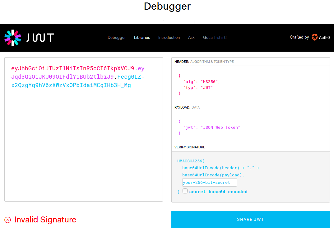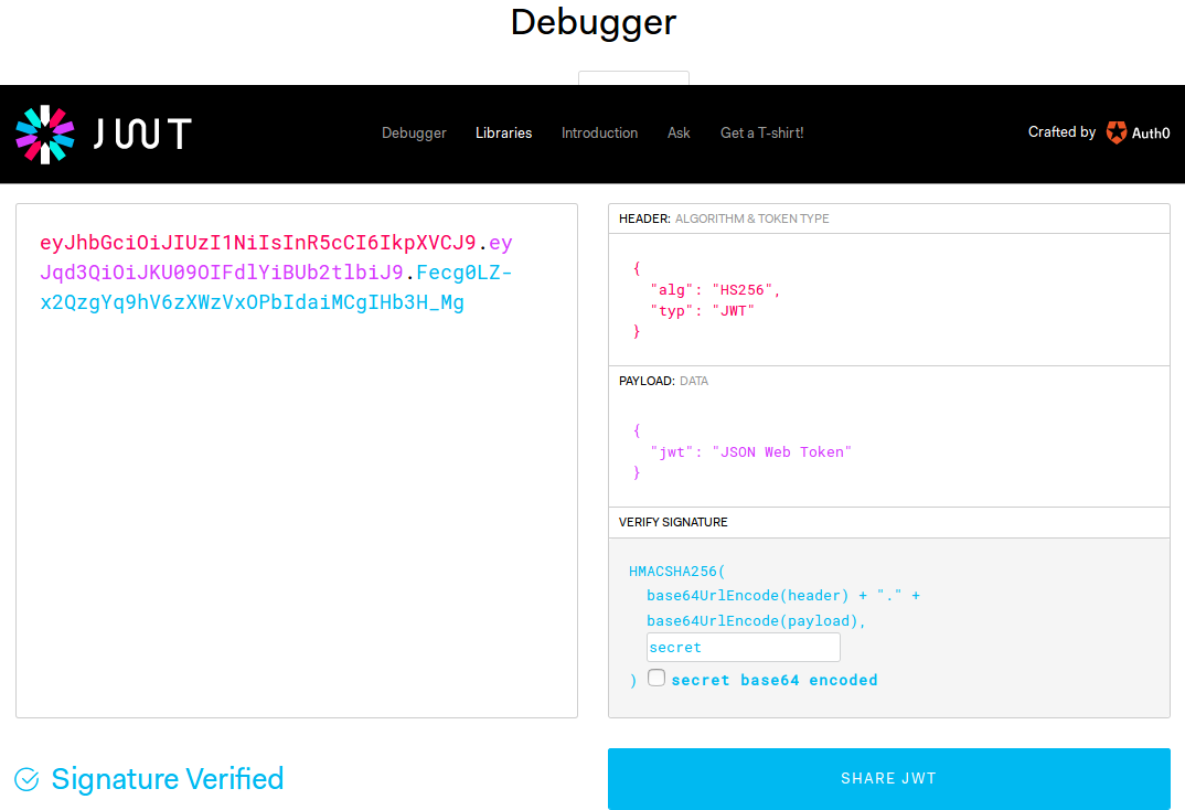 >>> token = jwt.encode({'py':'Python'},'secret')