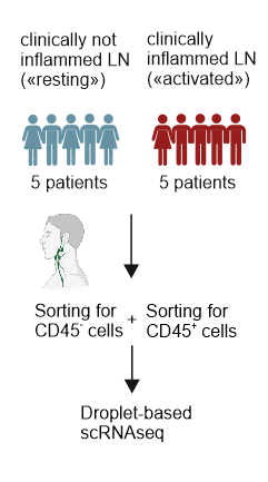 → How does inflammatory activation affect the human lymph node FRC landscape? Are PI16+ RCs involved in inflammatory reactions of human lymph nodes?