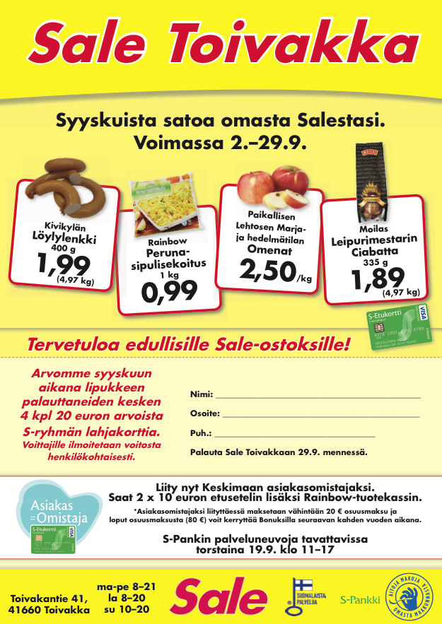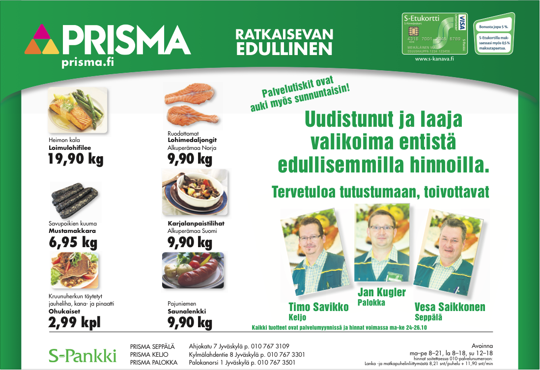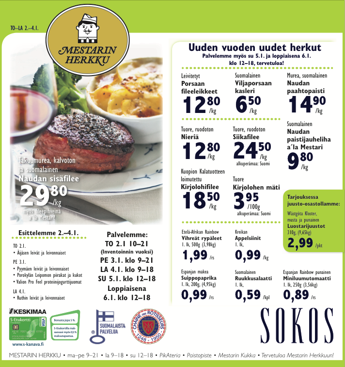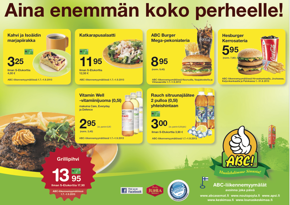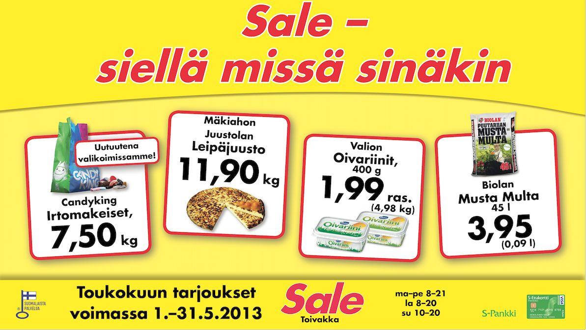 Sokos, Kodin Terra, S-market, Sale, ABC, Mestarin Herkku, Shell Veturi