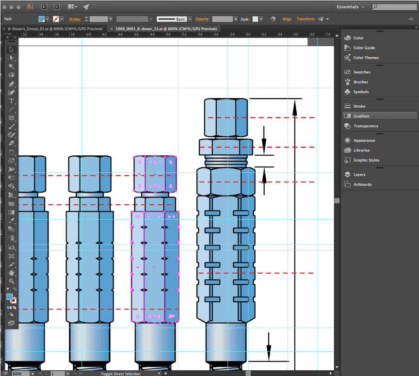 Vector drawing or graphic elements editing.