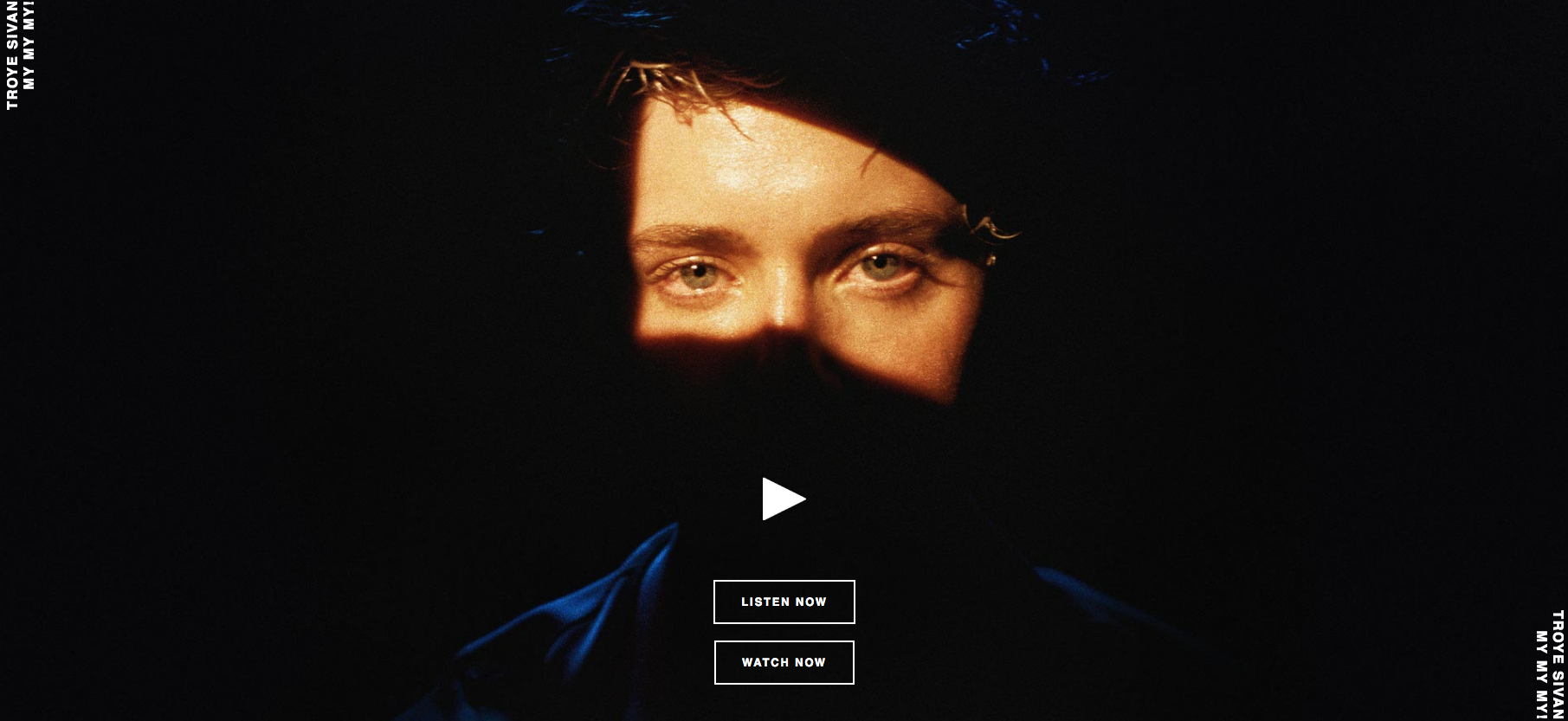 This artist, Troye Sivan, has recently released a new single titled 'My My My' which this very first page of his website immediately advertises.