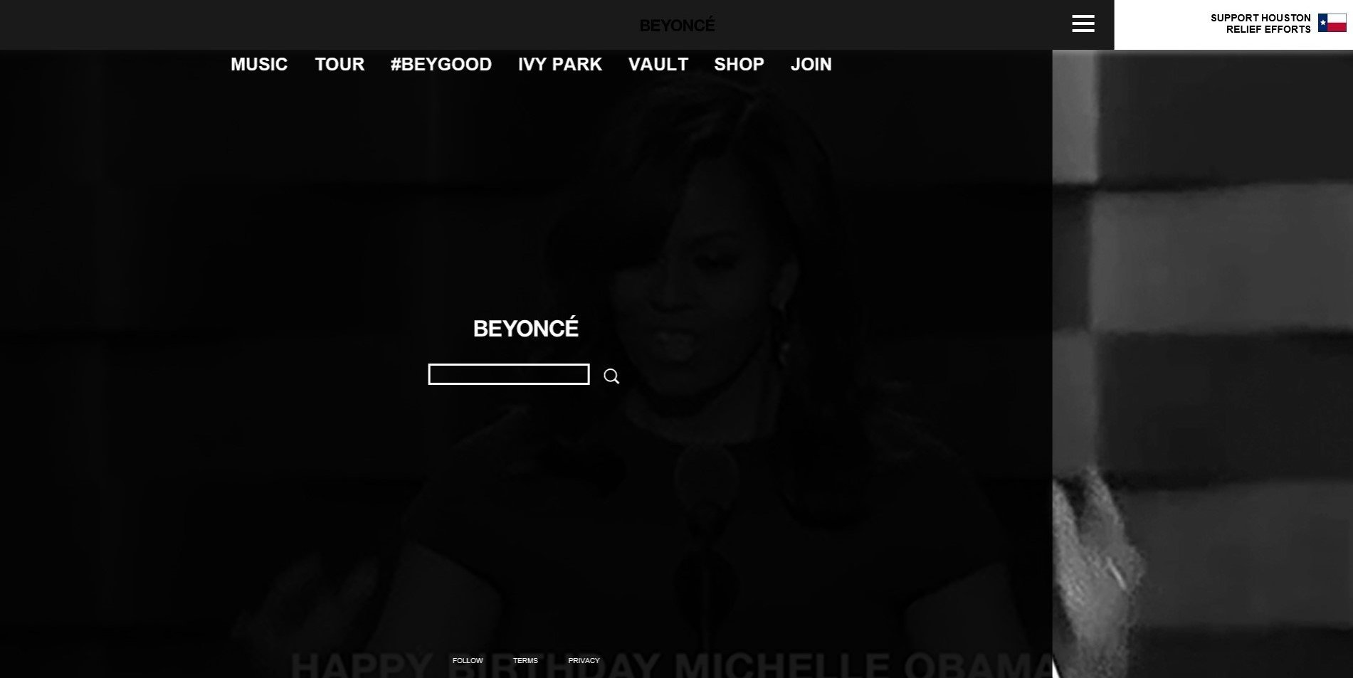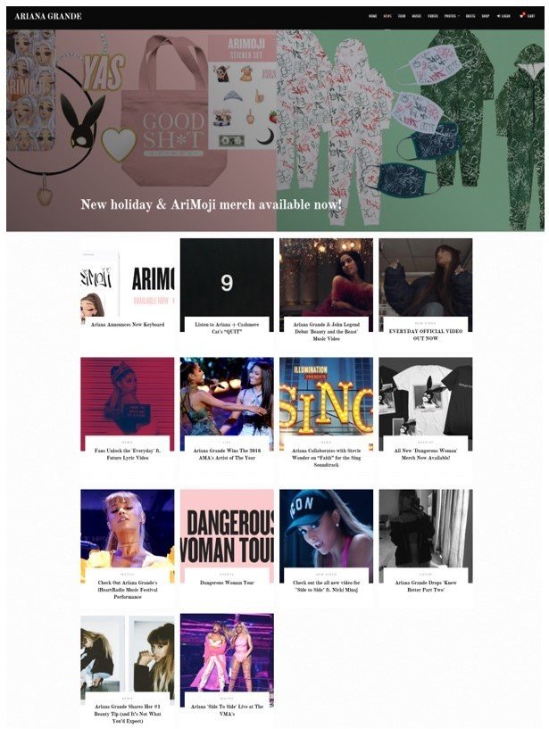 The use of a large photo of our artist for the front page of our website is very common in the music industry, with this convention frequently used for pop artists. For example: