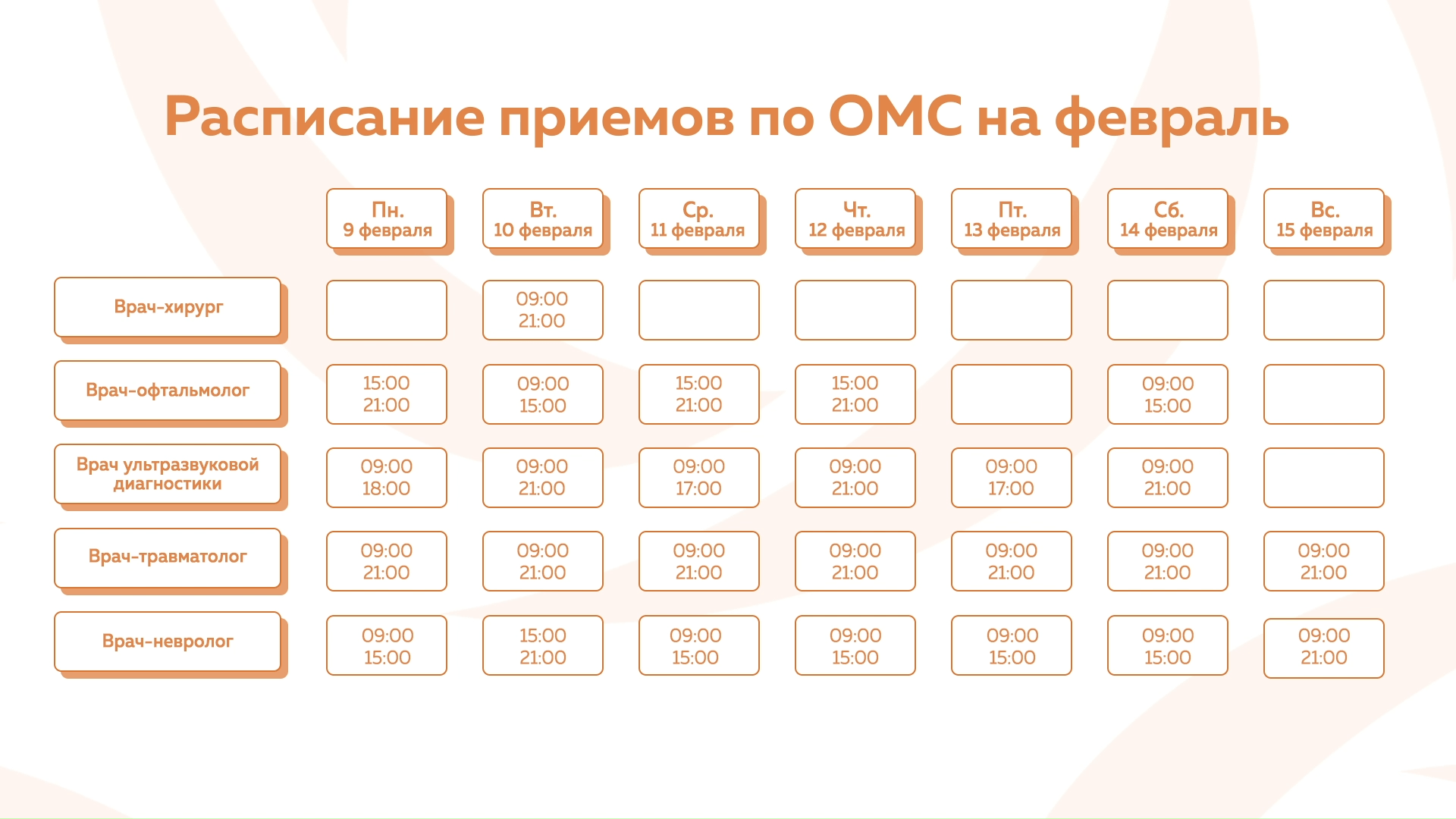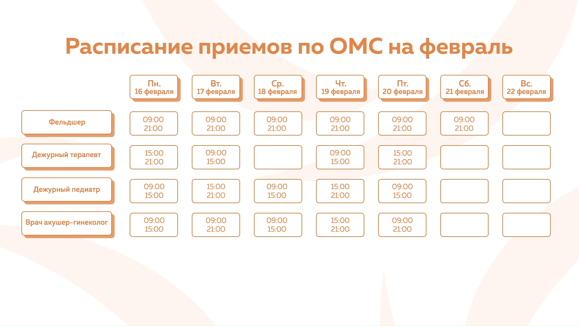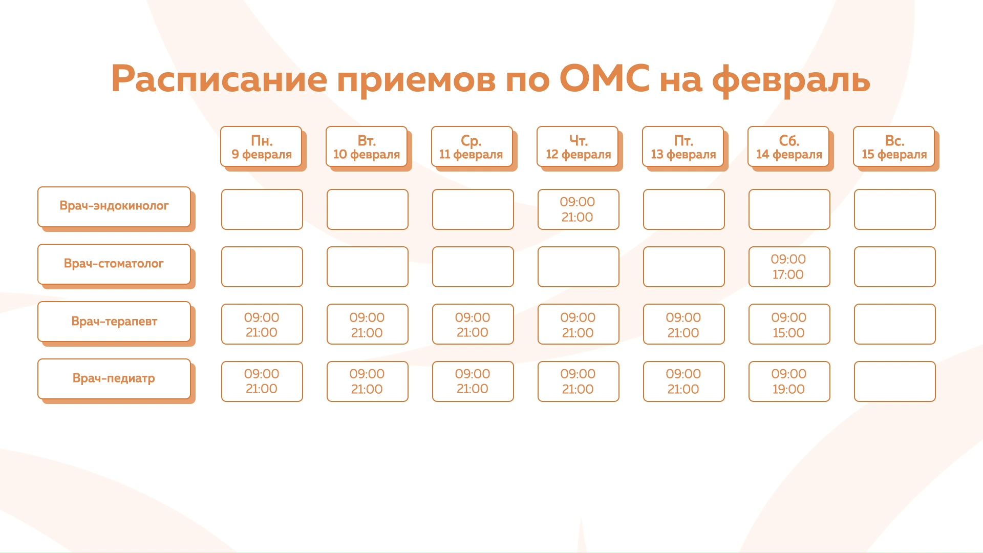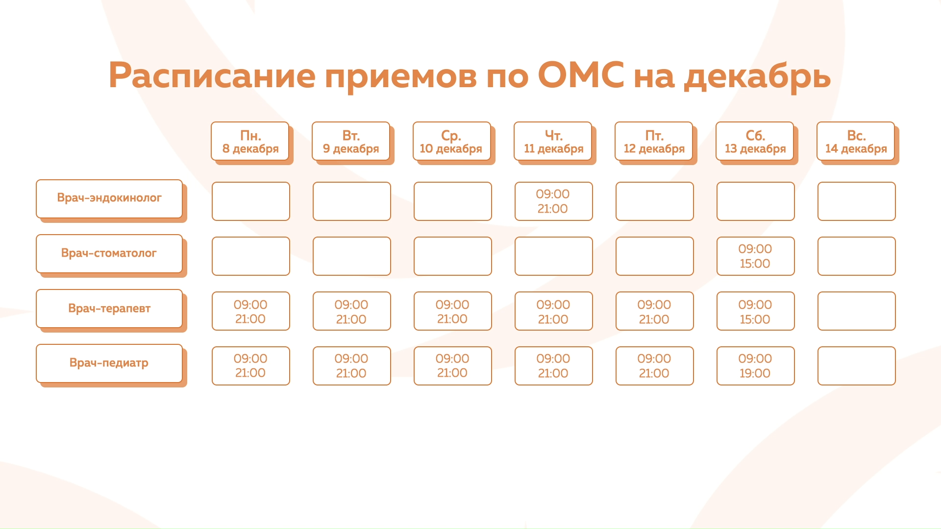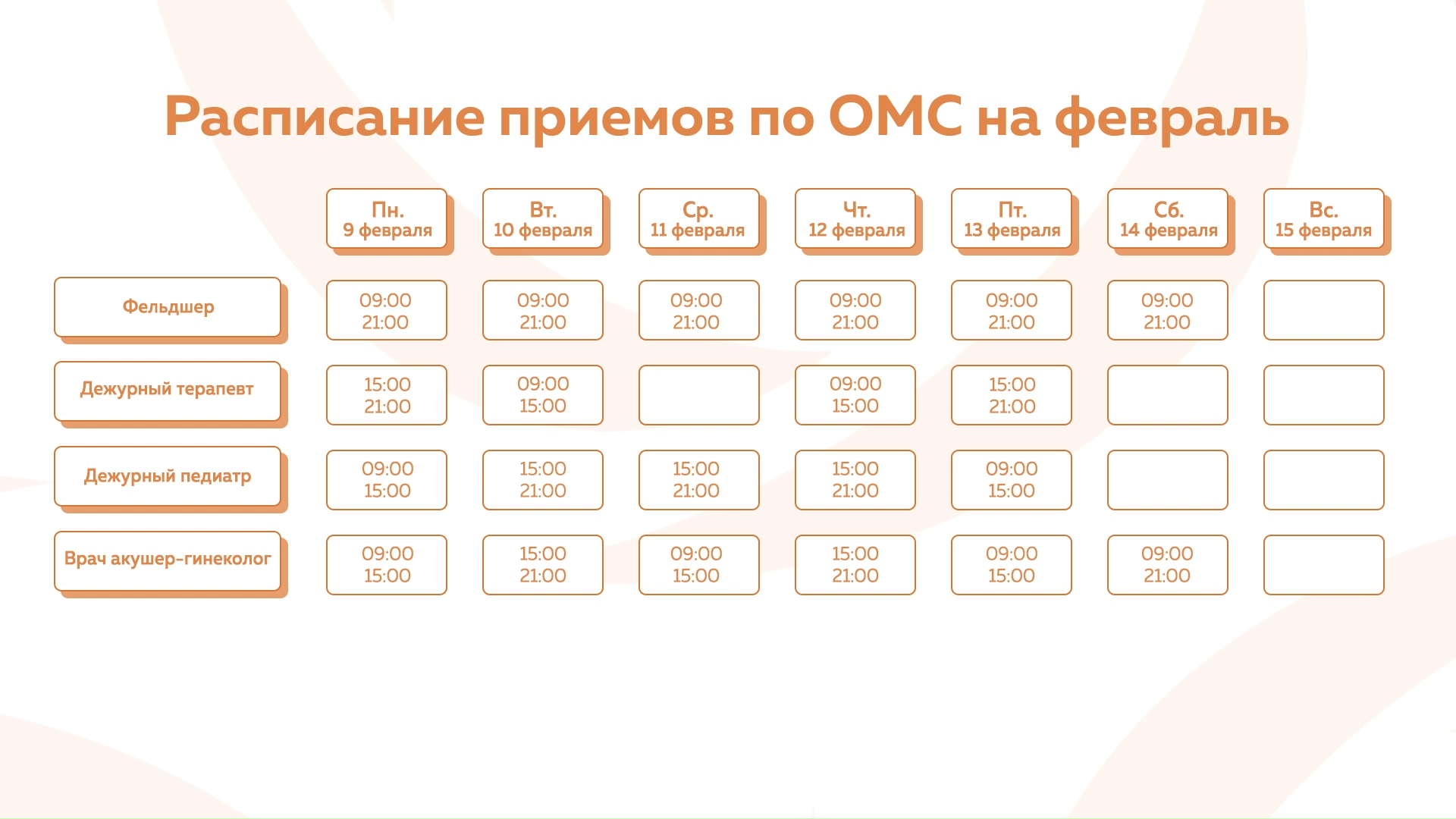 Девяткино - График приема по ОМС