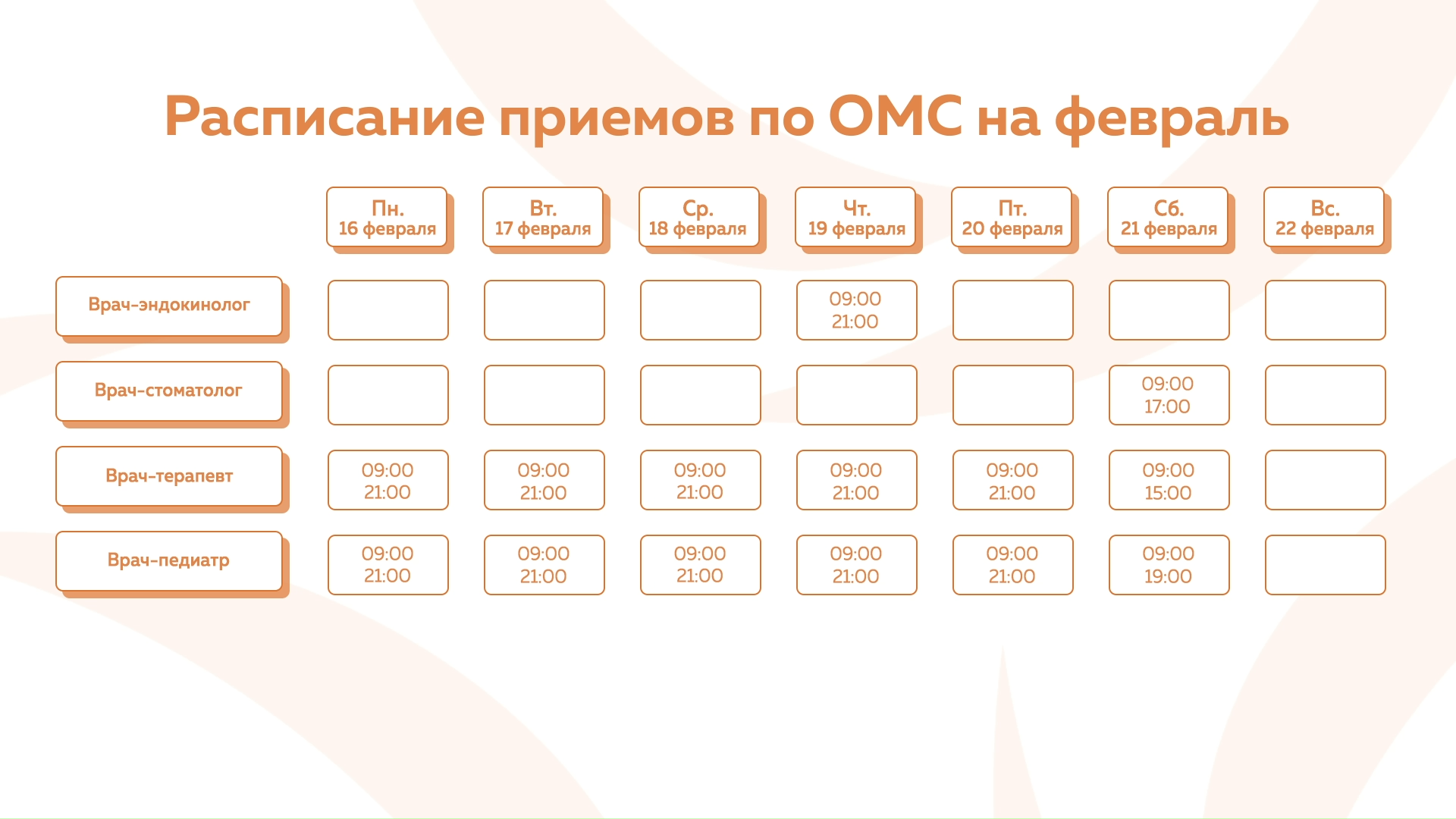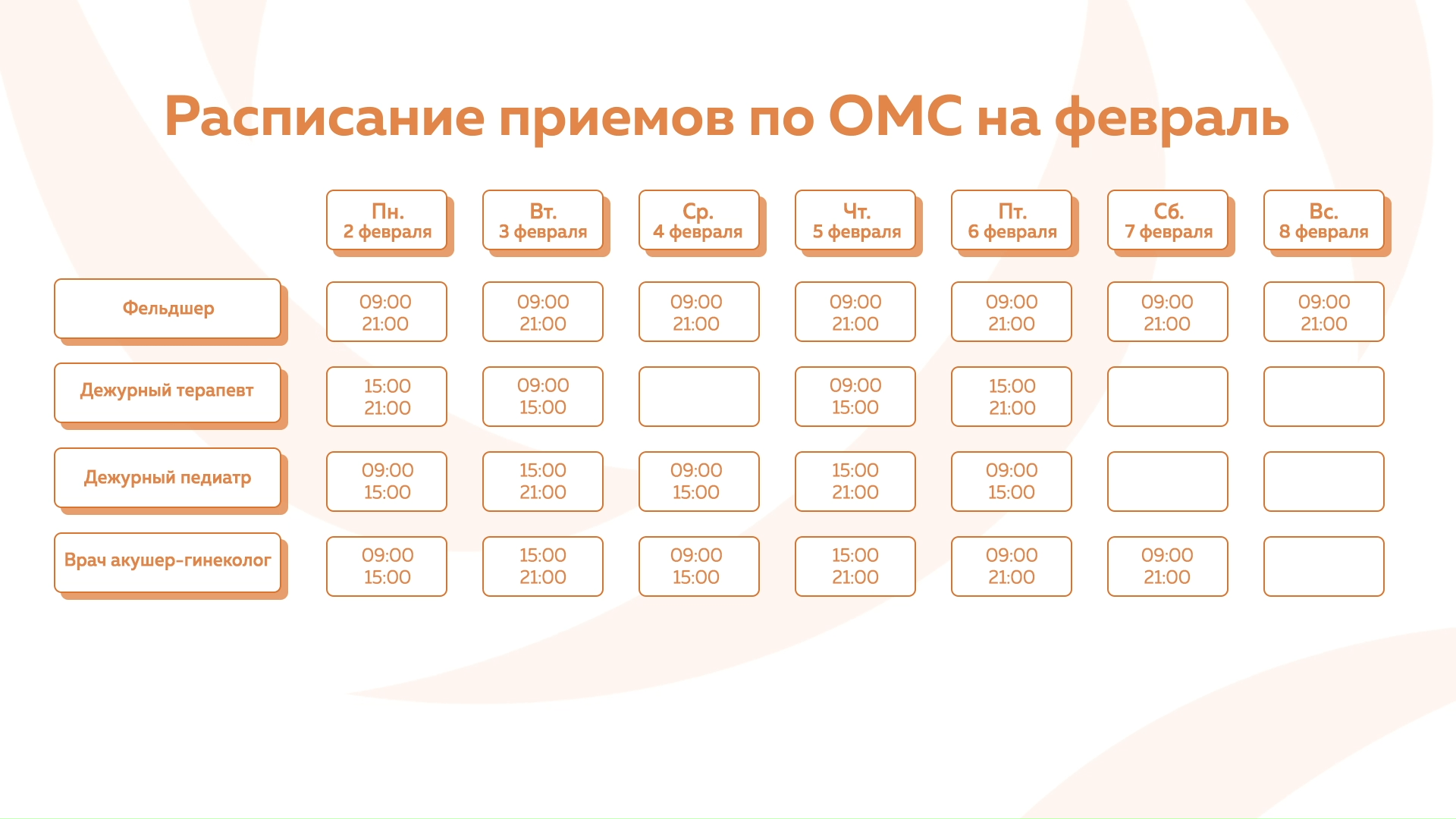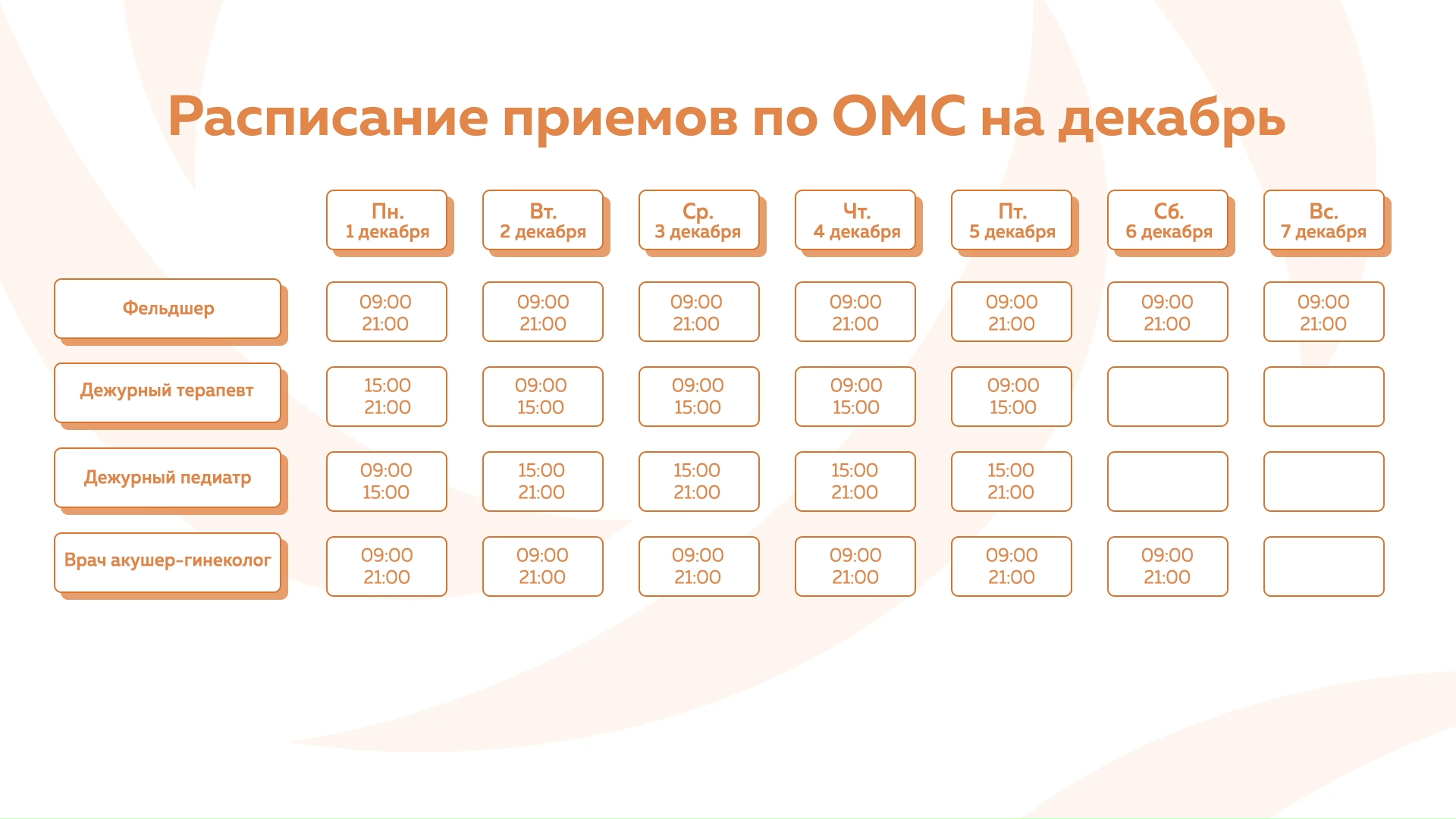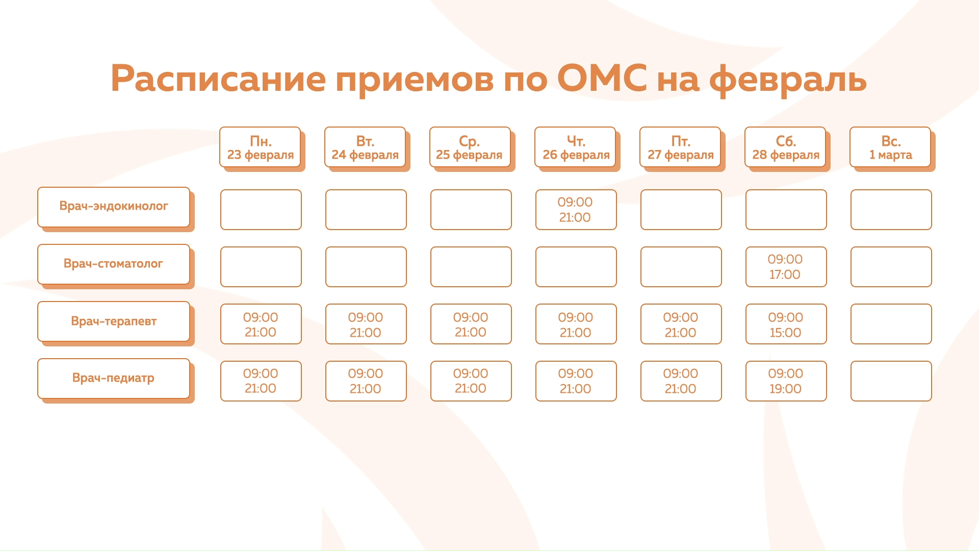 Девяткино - График приема по ОМС