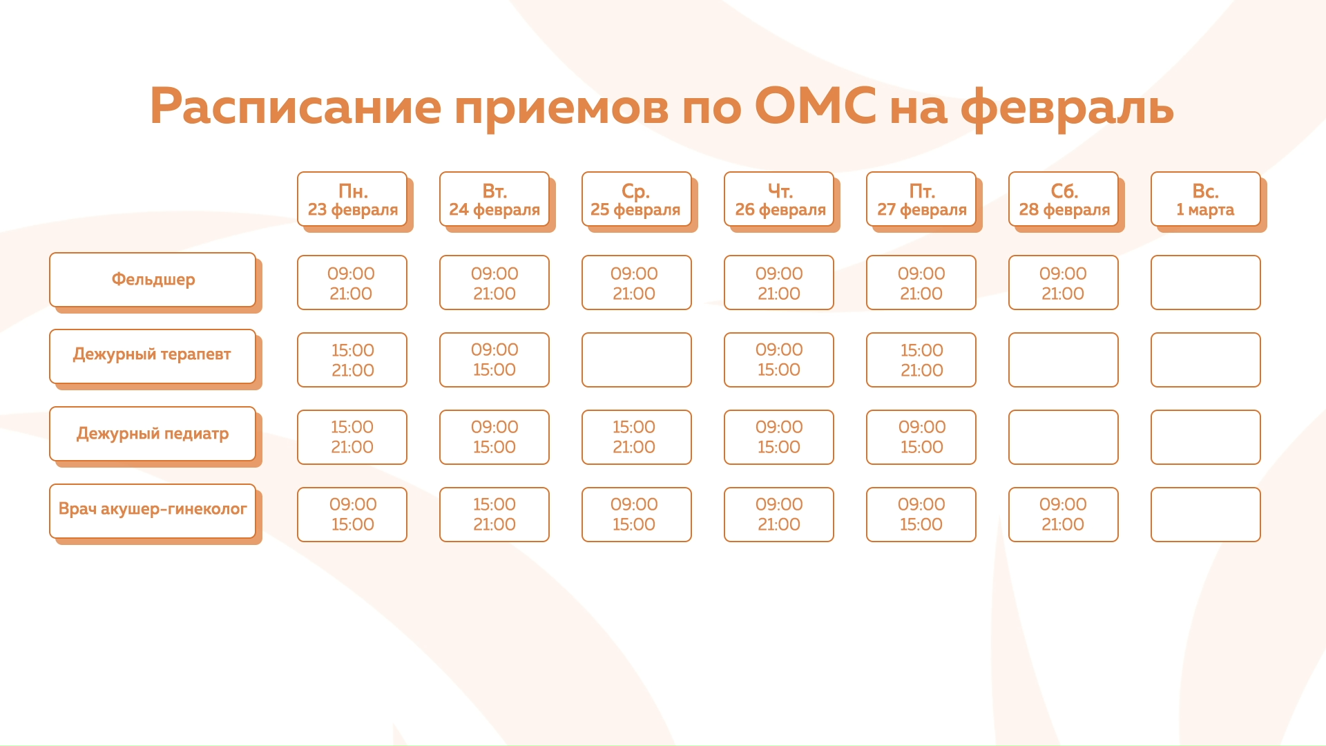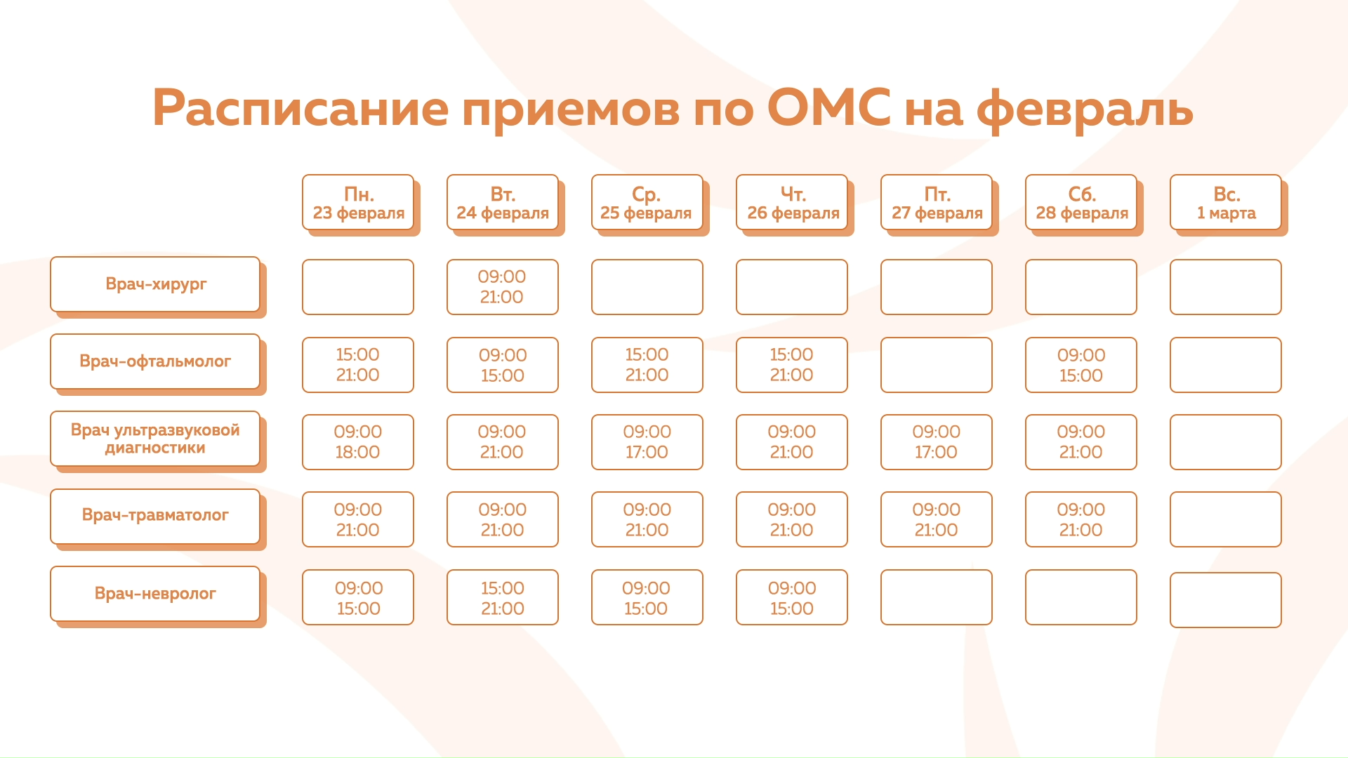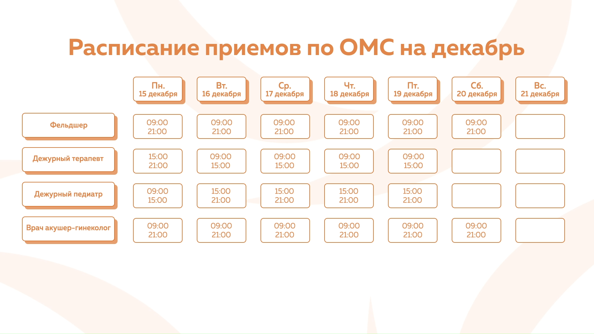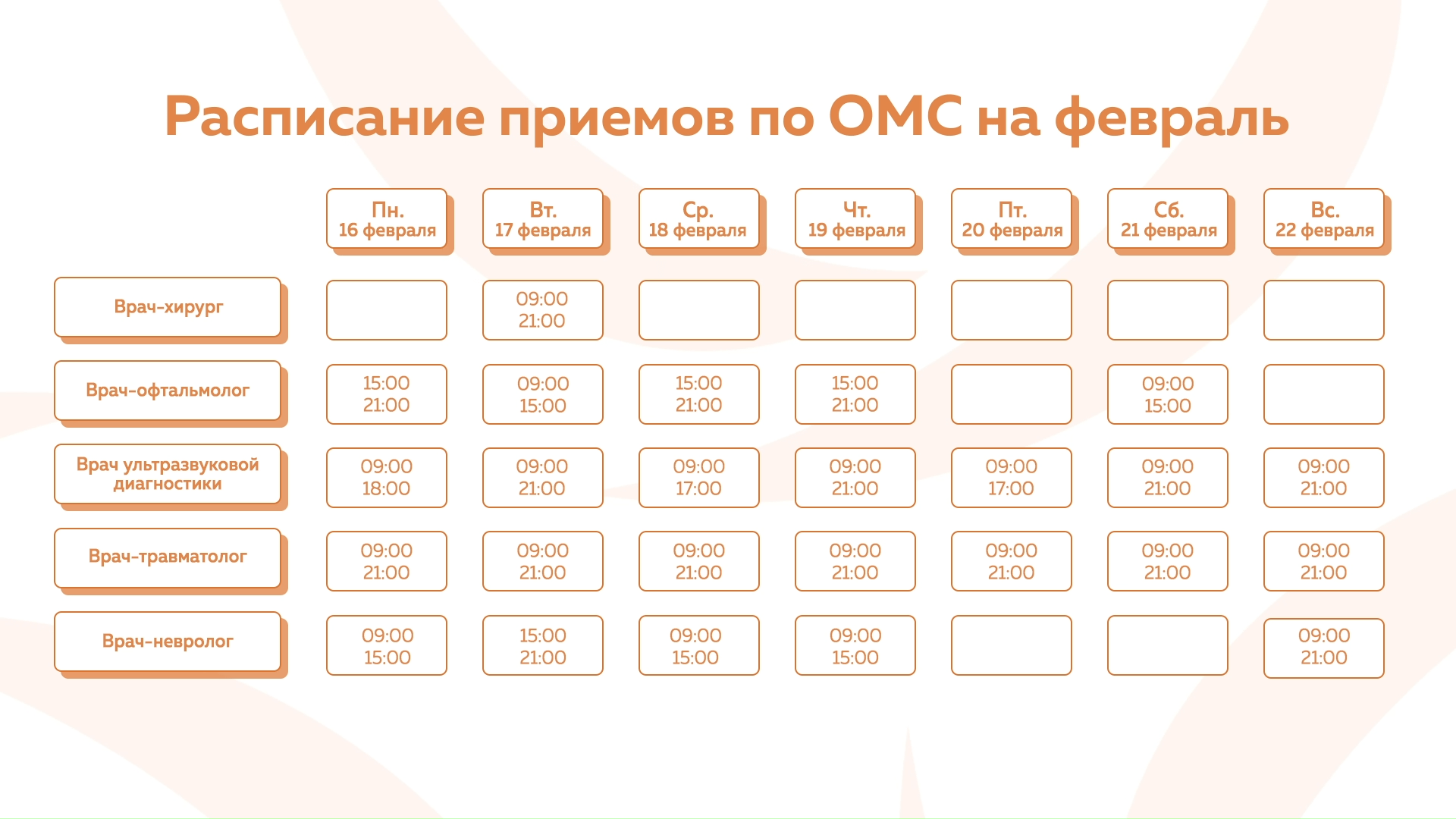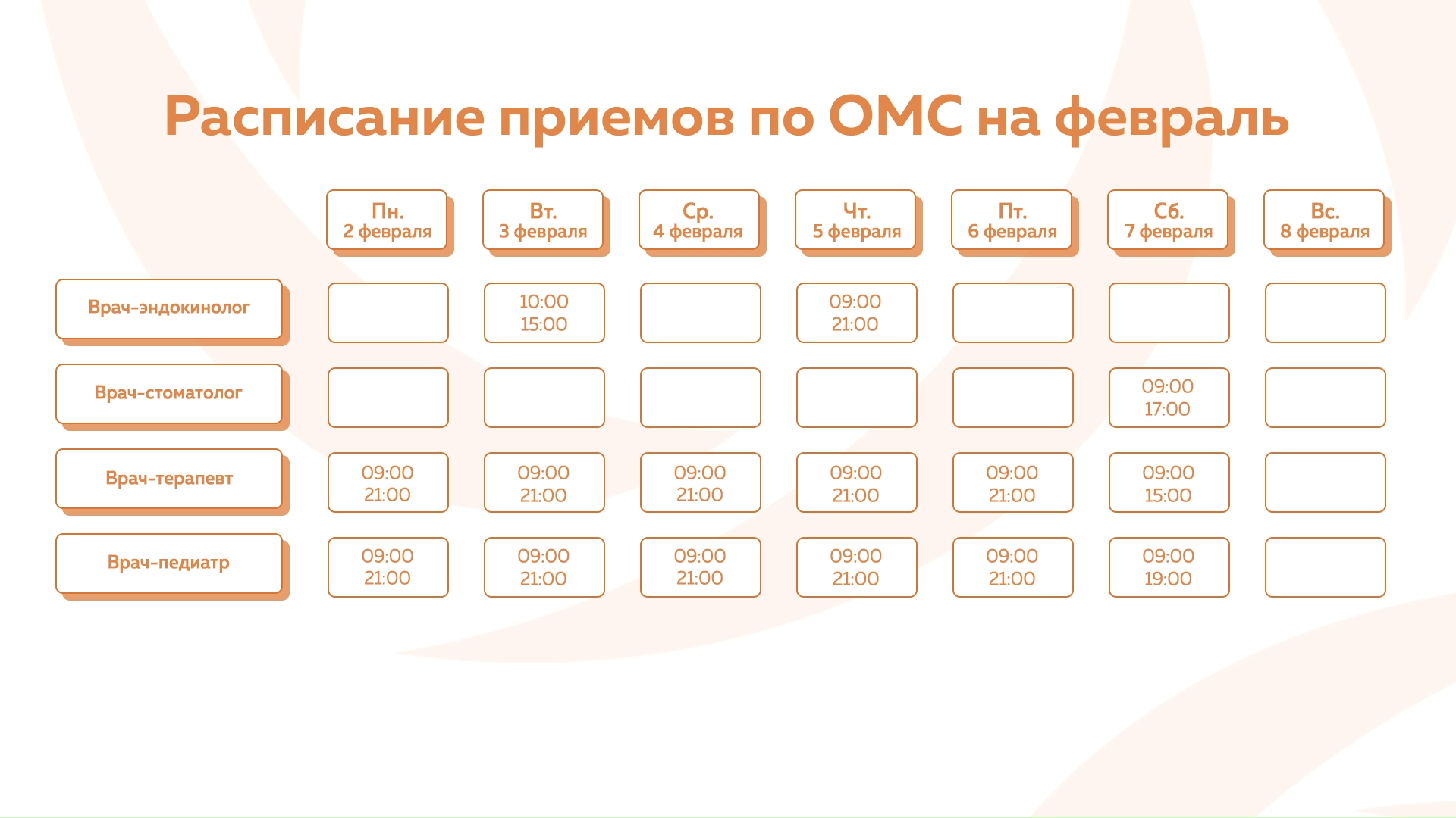 Девяткино - График приема по ОМС