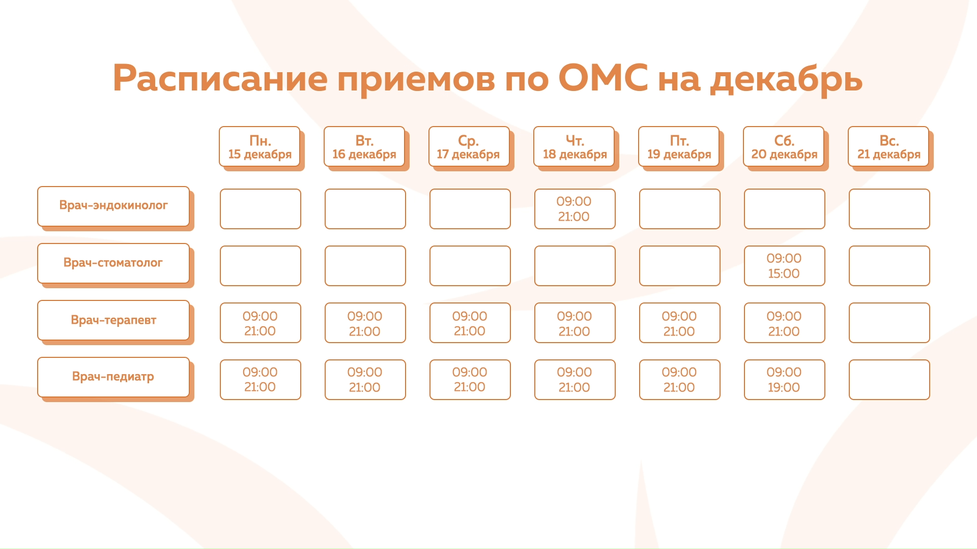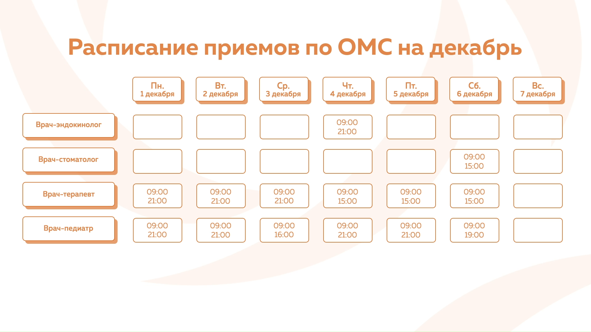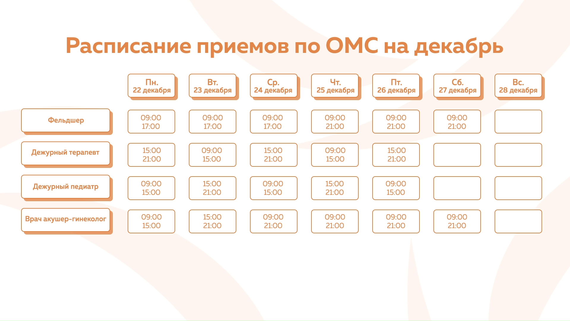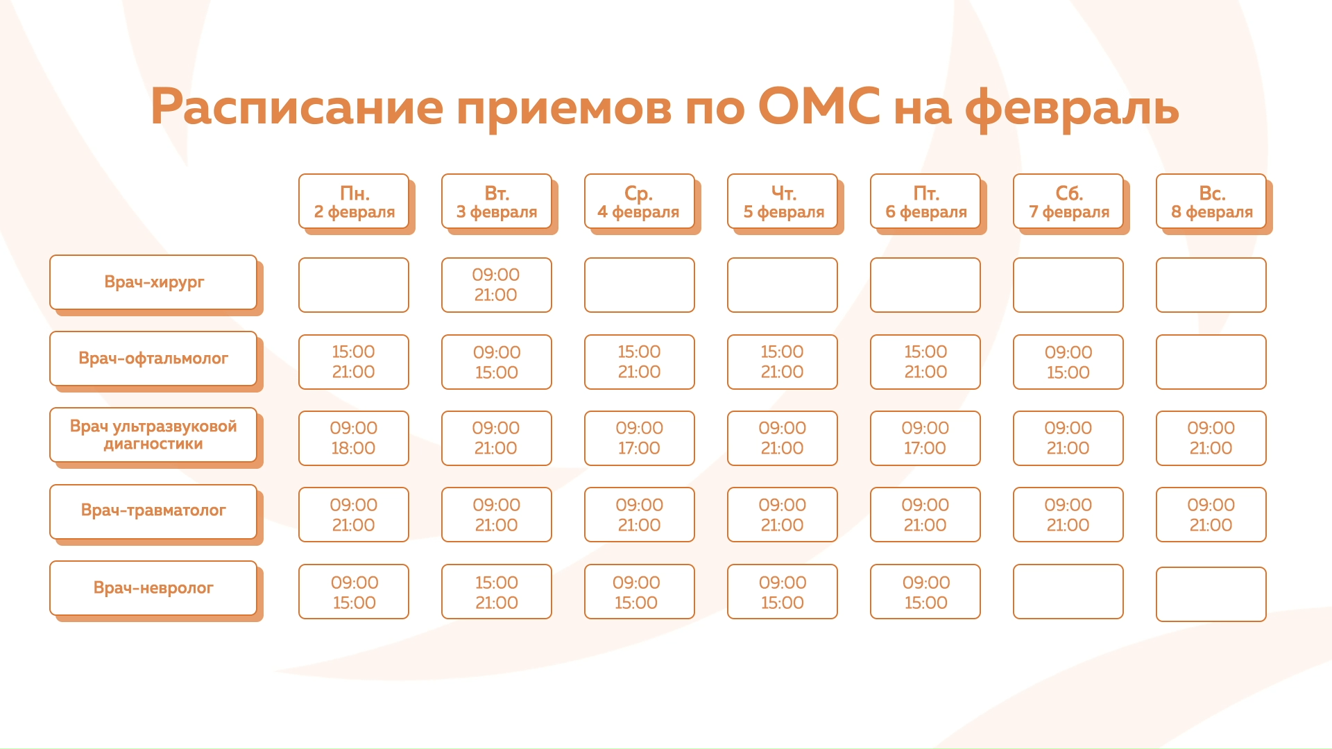 Девяткино - График приема по ОМС
