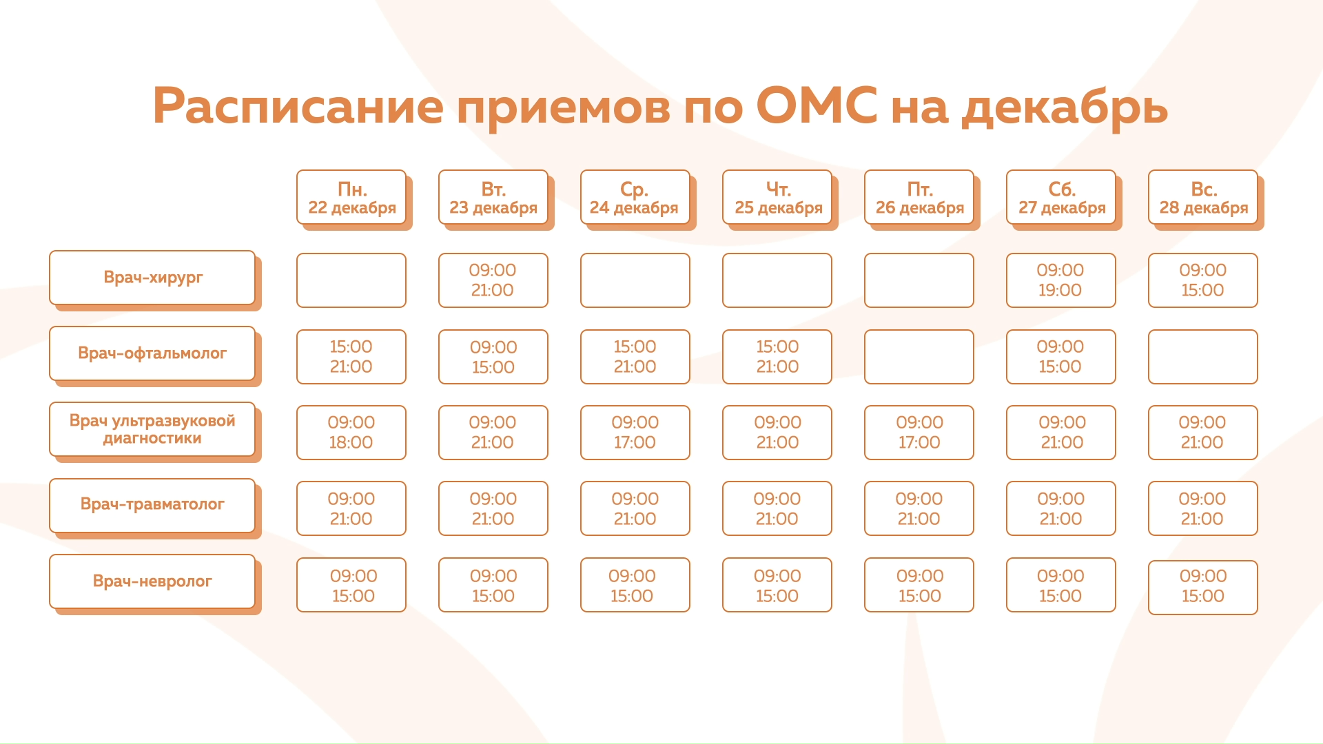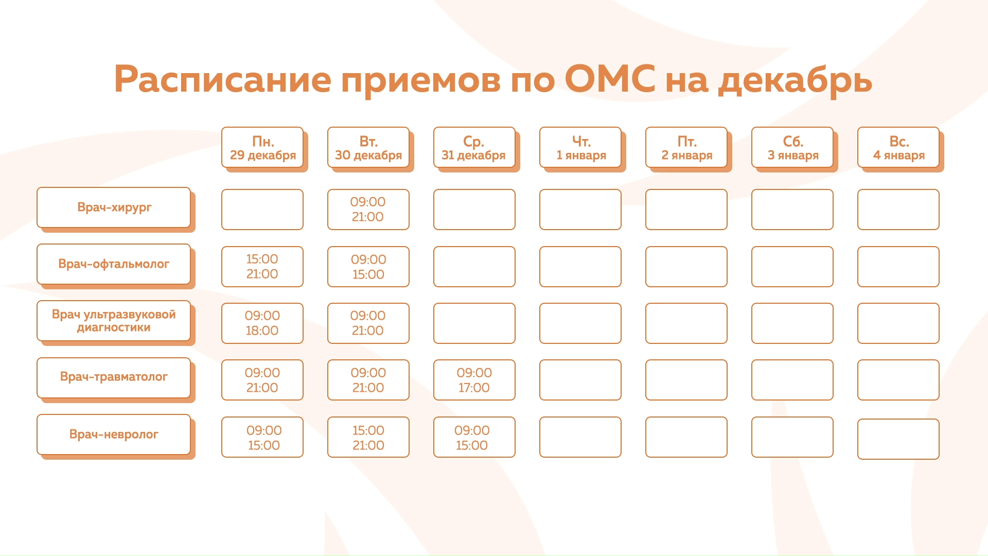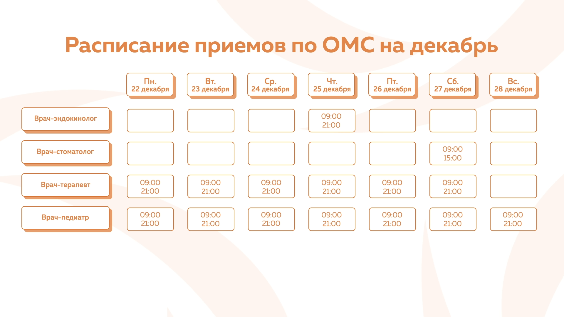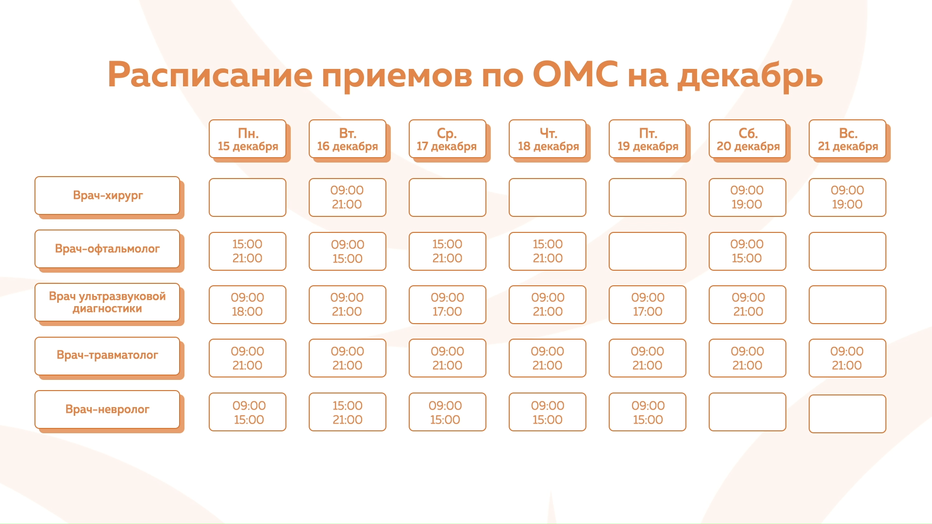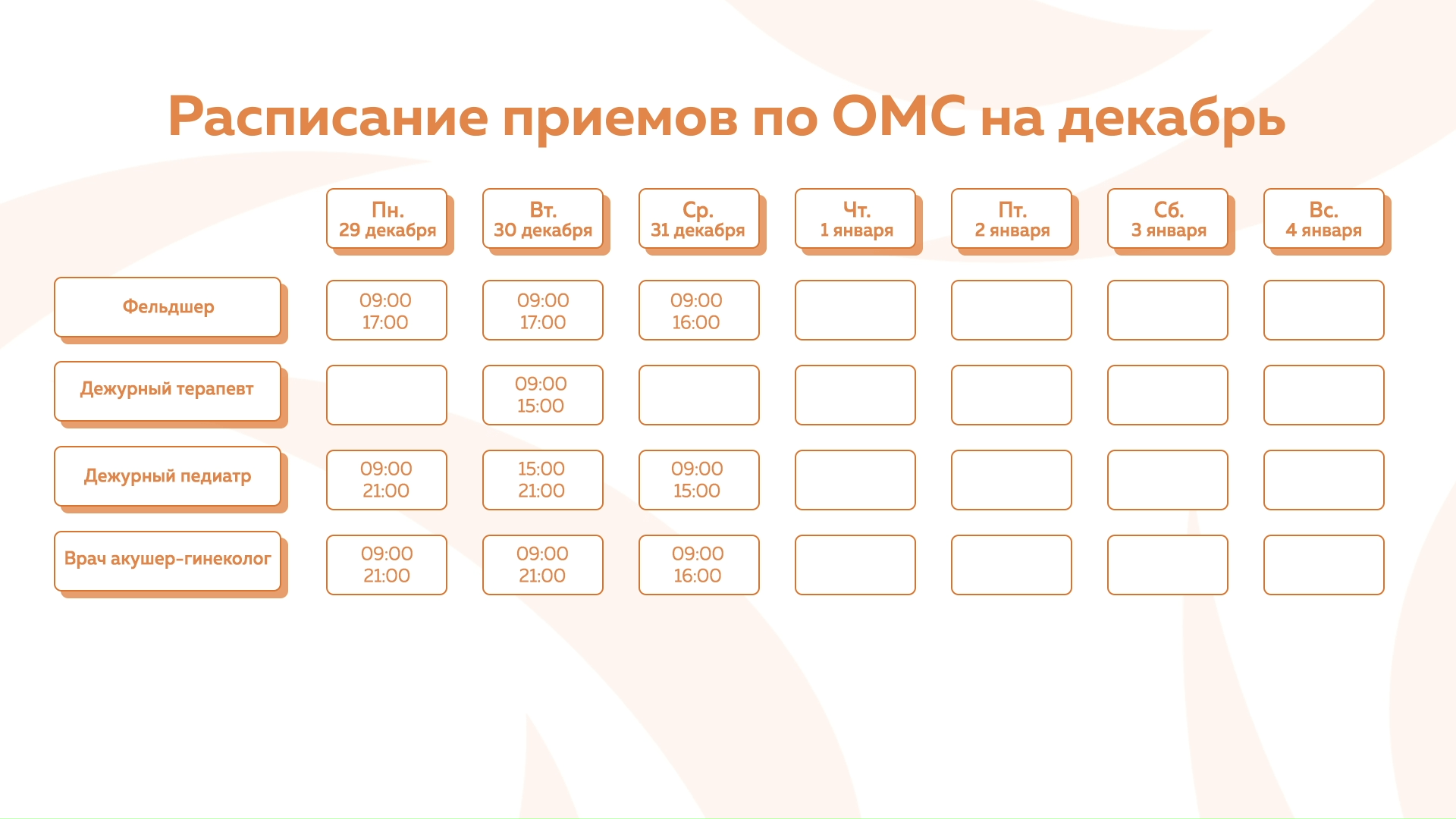 Девяткино - График приема по ОМС