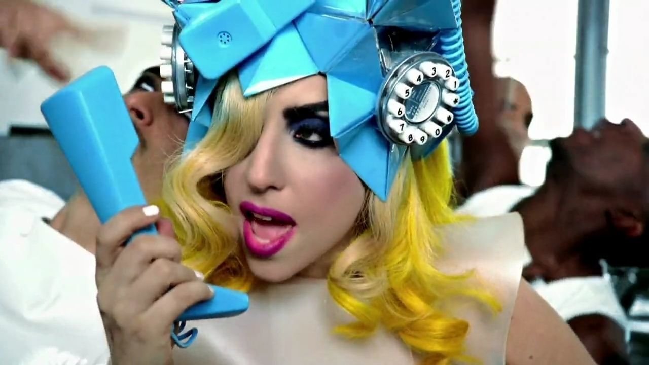 Lady Gaga’s telephone video, is narrative based, beginning with opening credits, just like a movie; by using visual effects with a bold 80s theme yellow and red title. It then cuts to an establishing shot, clearly showing the audience that it is a prison, then to a mid- shot of Lady Gaga being escorted by two female officers; there is high key lighting, emphasising her significant entrance. The camera then tracks her as she is chucked into the cell, being stripped from her clothing; reinforcing the female stereotype, stripping off her persona, leaving her exposed and vulnerable, as she is behind bars.