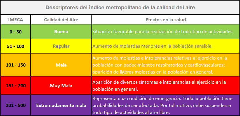 El IMECA fue creado con las finalidad de que la población comprenda los niveles de contaminación existentes en el aire. Esto a través de la implementación de una escala igual para todos los contaminantes según su capacidad de ocasionar molestias al ser humano. Es el Sistema de monitoreo atmosférico de la Cd de México (Simat) el que obtiene estas mediciones de la calidad del aire.