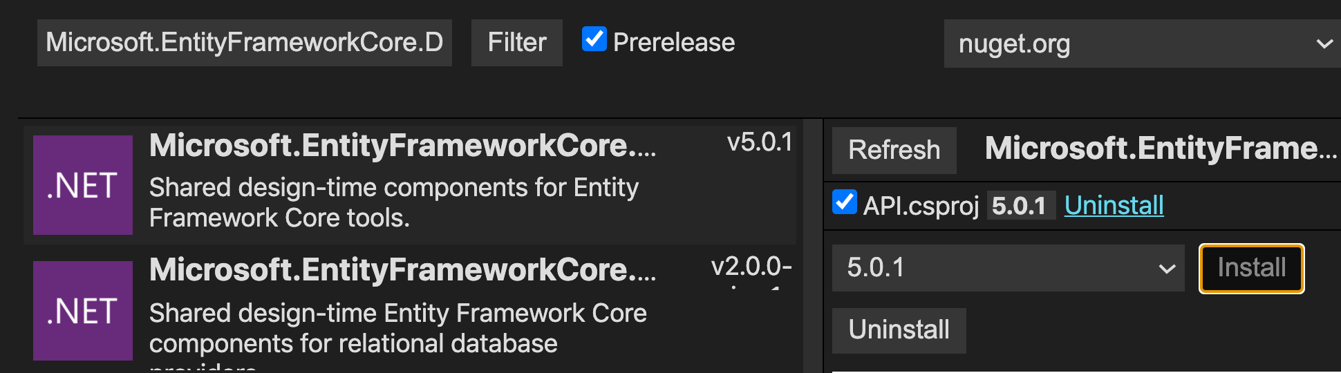 dotnet ef migrations add InitialCreate -o Data/MigrationsInstalar desde la terminal: dotnet tool install --global dotnet-ef --version 5.0.1 (Buscar la versión en nuget.org)