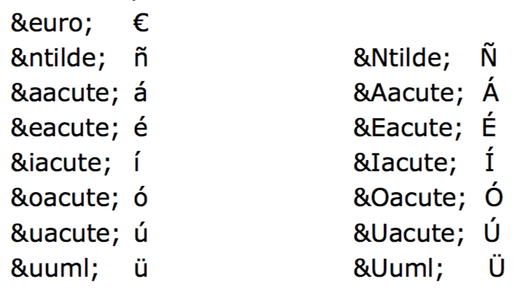 <!‐‐ Fin de las noticias ‐‐><!‐‐ Esto se puede mejorar ‐‐><!‐‐ Script para identificar las preferencias del usuario ‐‐>Todos los caracteres se pueden especificar con su código precedido del símbolo &