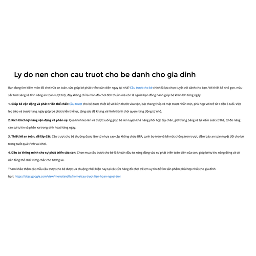 Merryland là công ty hàng đầu Việt Nam trong lĩnh vực sản xuất thiết bị sân chơi ngoài trời cao cấp cho trẻ em tại trường mầm non, khu dô thị, công viên với các thiết bị nổi bật như cầu trượt cho bé, xích đu, bập bênh, đu quay. #merryland #merrylandl