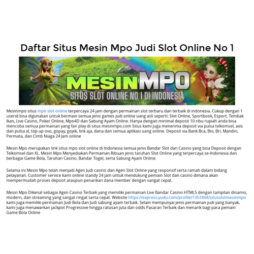 Mesinmpo situs mpo slot online terpercaya 24 jam dengan permainan slot terbaru dan terbaik di indonesia.
