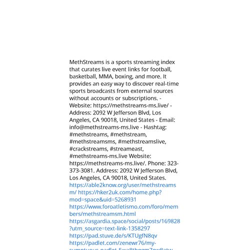 Website: https://methstreams-ms.live/https://methstreams-ms.live/ MethStreams is a sports streaming index that curates live event links for football, basketball, MMA, boxing, and more. It provides an easy way to discover real-time sports broadcasts from external sources withou