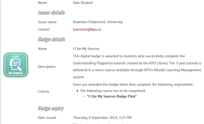 Moodle badge link: