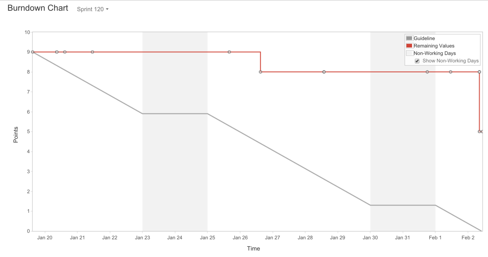 We did not make our sprint commitment. We completed 4 out of 9 committed points.