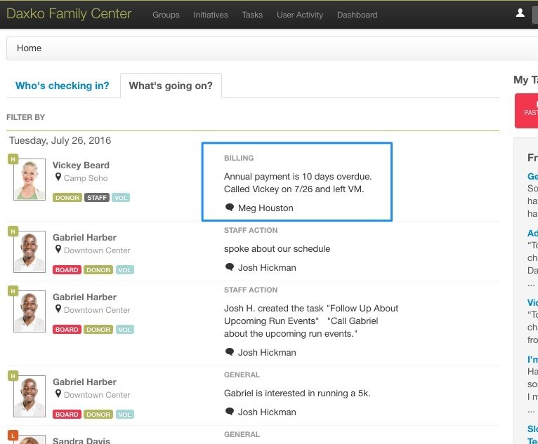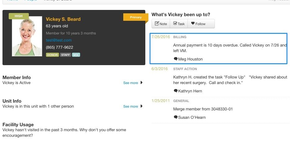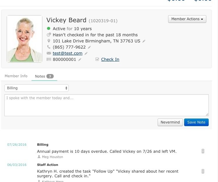 Notes can be entered from either the Membership Information Page in Ops, or the Member Information screen. Notes created in Ops show in the What's Going On tab on the Homepage, and on the Member 360 page.
