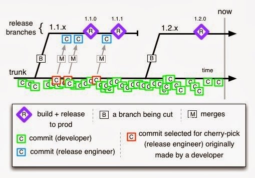 可能有多個private repo(owned by developers),最後都會回mainline,由release developer審核