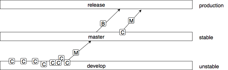 最後只會有release以及master(mainline)