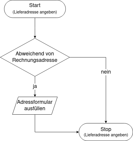 Aktionen oder Prozesschritte sind abgerundete Rechtecke.