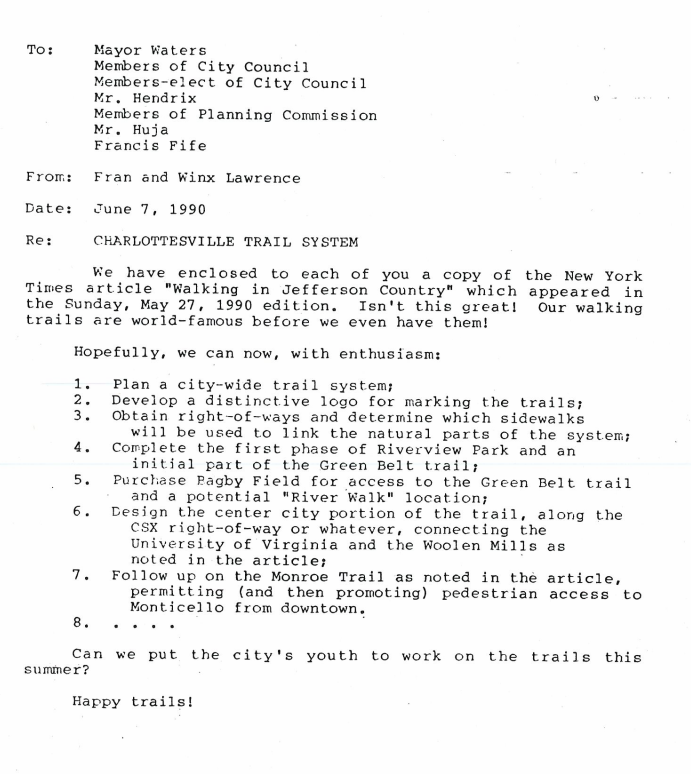 The New York Times published an article about Charlottesville's "World Famous Trails" in 1990.