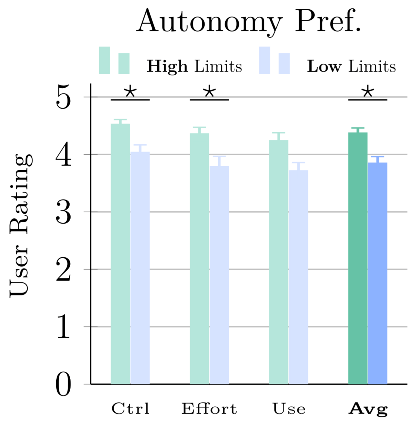 Trade-off between autonomy (with chance of error) and high-effort manual control.