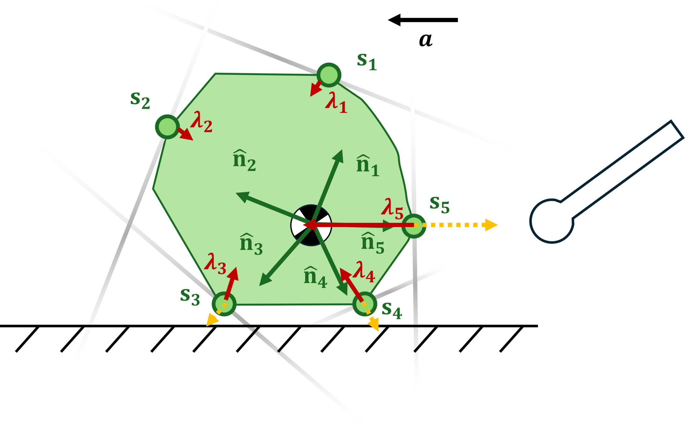 - Linearizes non-contact dynamics, geometry, and kinematic Jacobian