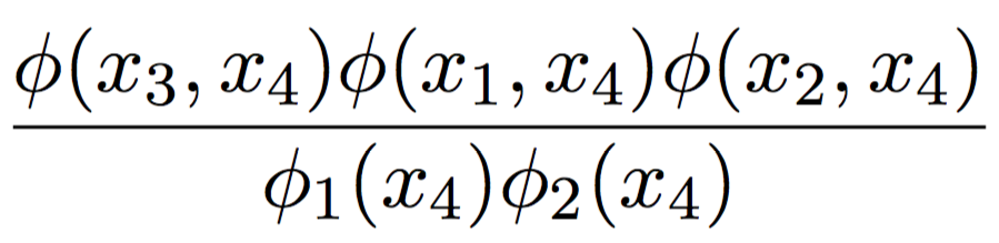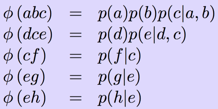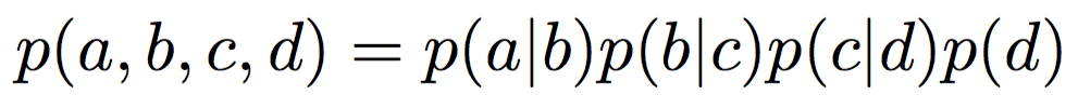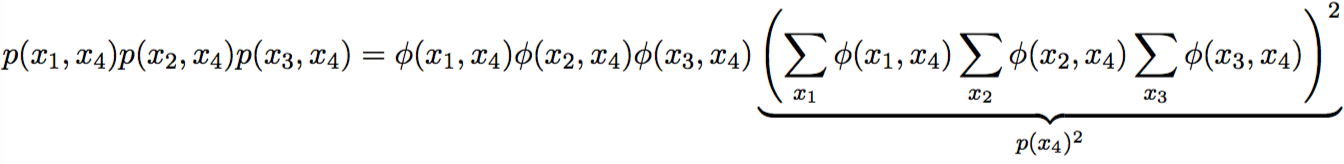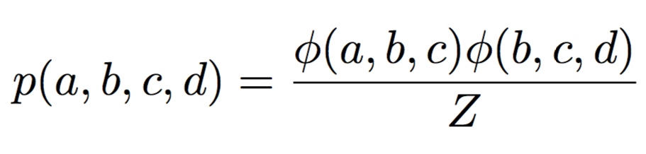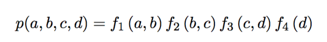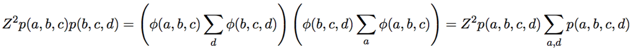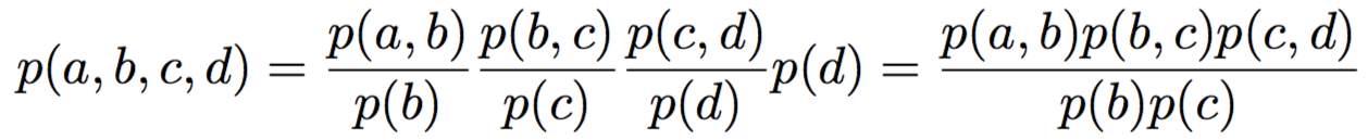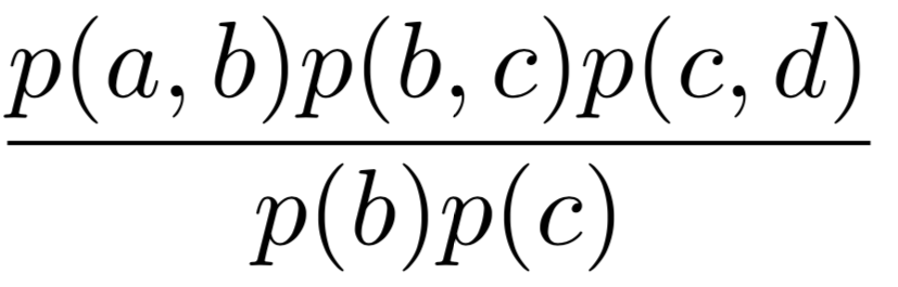 =\, p(b,c) \sum\limits_{a} p(a,b) \sum\limits_{d} p(c,d) \,=\, p(b)p(b,c)p(c)