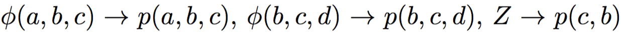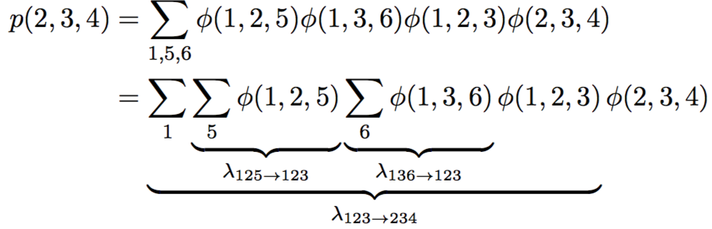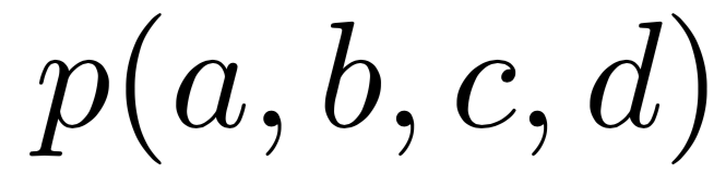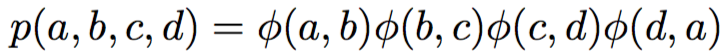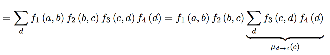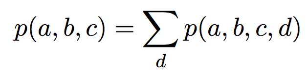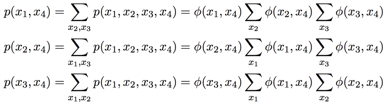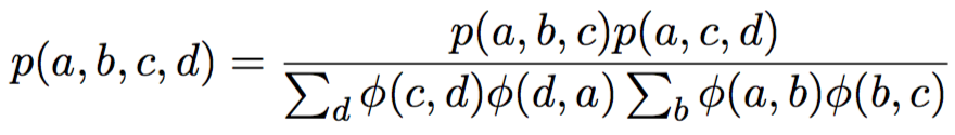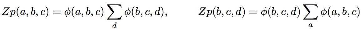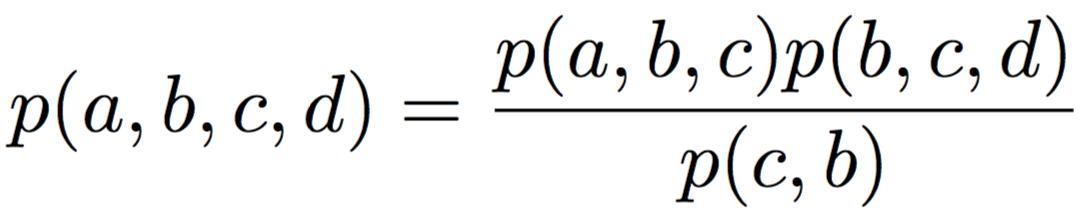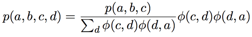 p(b, c) \,=\, \sum\limits_{a, d} p(a,b) p(b,c) p(c,d) \,=\,