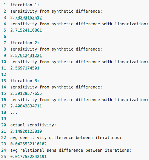 Для реальных данных относительное понижение чувствительности на единственной итерации равно 0.0573