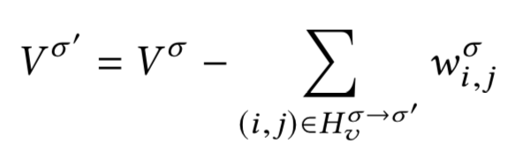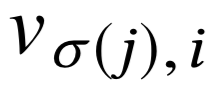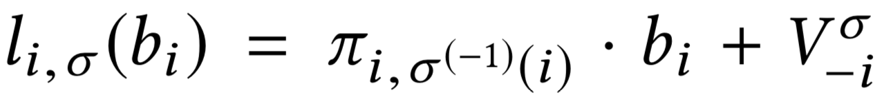 \(V^{\sigma} \,= \, V^{\sigma}_{-i} + \pi_{i, \sigma^{-1}(i)} b_i\)