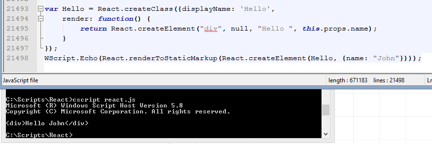 A library released in 2013 (React.js) can still run, unmodified, under the WScript engine (unchanged since 1999)*