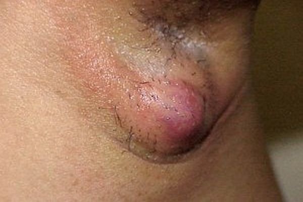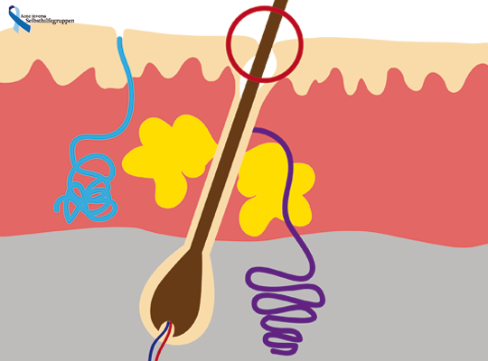 Talg und sonstige Substanzen können durch die Verlegung nicht mehr austreten und sammelt sich im Haarfollikel