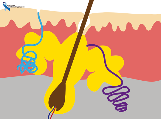 Sowohl Abwehrzellen, als auch die dazugehörigen Botenstoffe sind beim Acne inversa Betroffenen ständig in stark erhöhter Anzahl im Unterhautfettgewebe zu finden.
